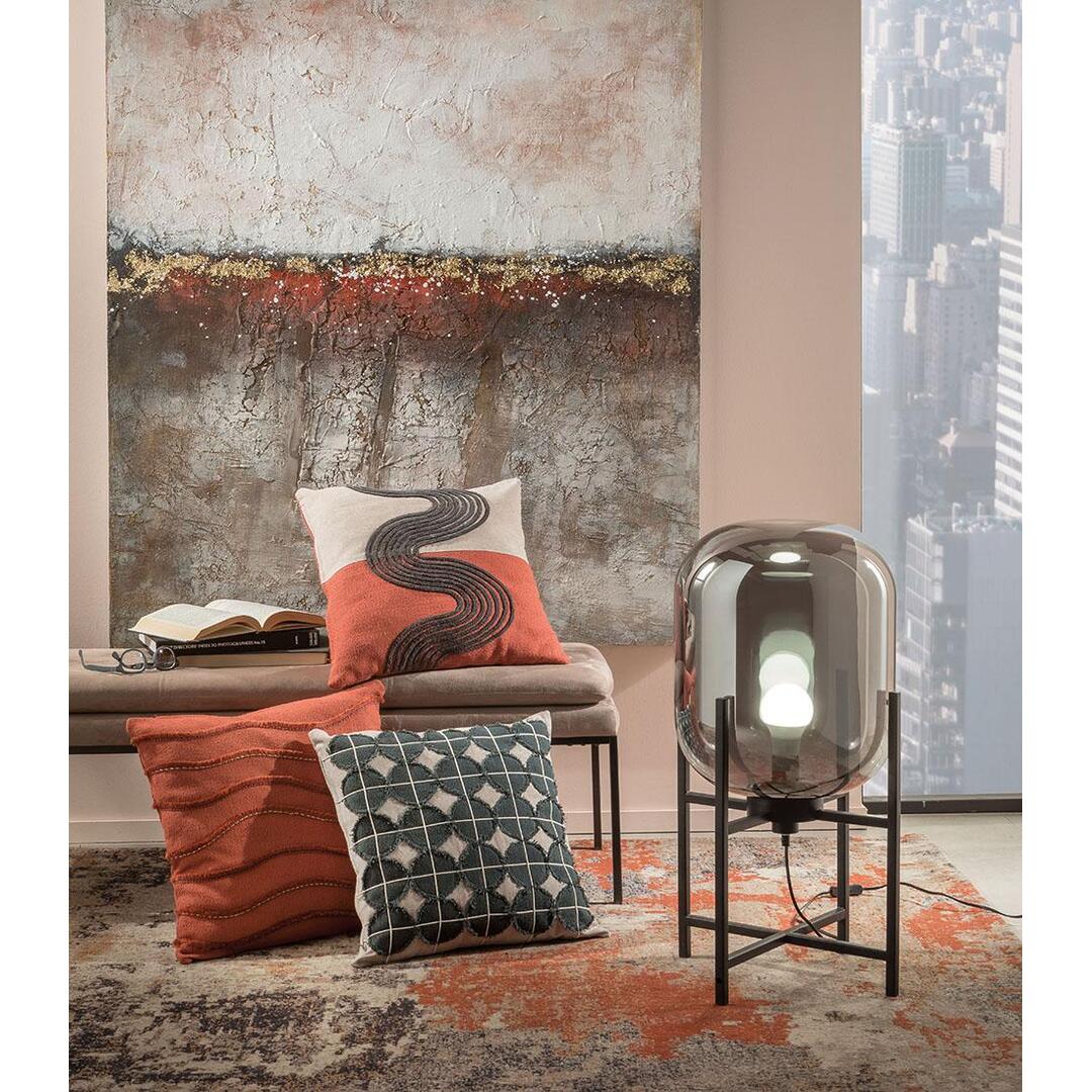Cuscino d'arredo Oca Nera in cotone ricamato, caratterizzato da particolari trame geometriche e contrasti di colore, per un living moderno e dallo stile urban.