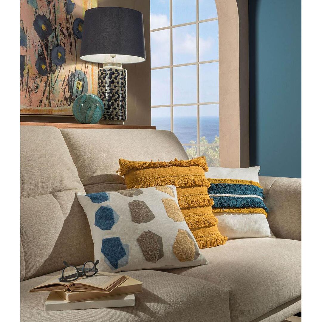 Cuscino d'arredo Oca Nera in cotone ricamato dai vivaci toni del blu e giallo. Perfetto per arredare un living moderno donando un dettaglio di colore al vostro divano.