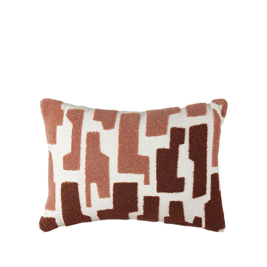 Cuscino d'arredo Oca Nera in cotone ricamato dai toni caldi. Grazie al motivo geometrico e al piacevole effetto materico sarà il complemento d'arredo perfetto per impreziosire un arredamento moderno. Da abbinare al cuscino quadrato della stessa serie.