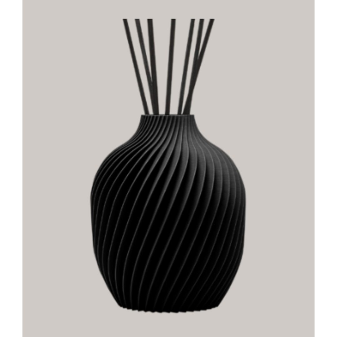 Diffusore Hypno Casa Art3D realizzato in bioplastica biodegradabile e riciclabile derivata da fonti rinnovabili come amido di mais e canna da zucchero lavorata mediante l'innovativa tecnica di stampa ini 3D, colore nero. Ogni creazione riflette l’autenticità del lavoro artigianale contemporaneo e l’attenzione all’ambiente.