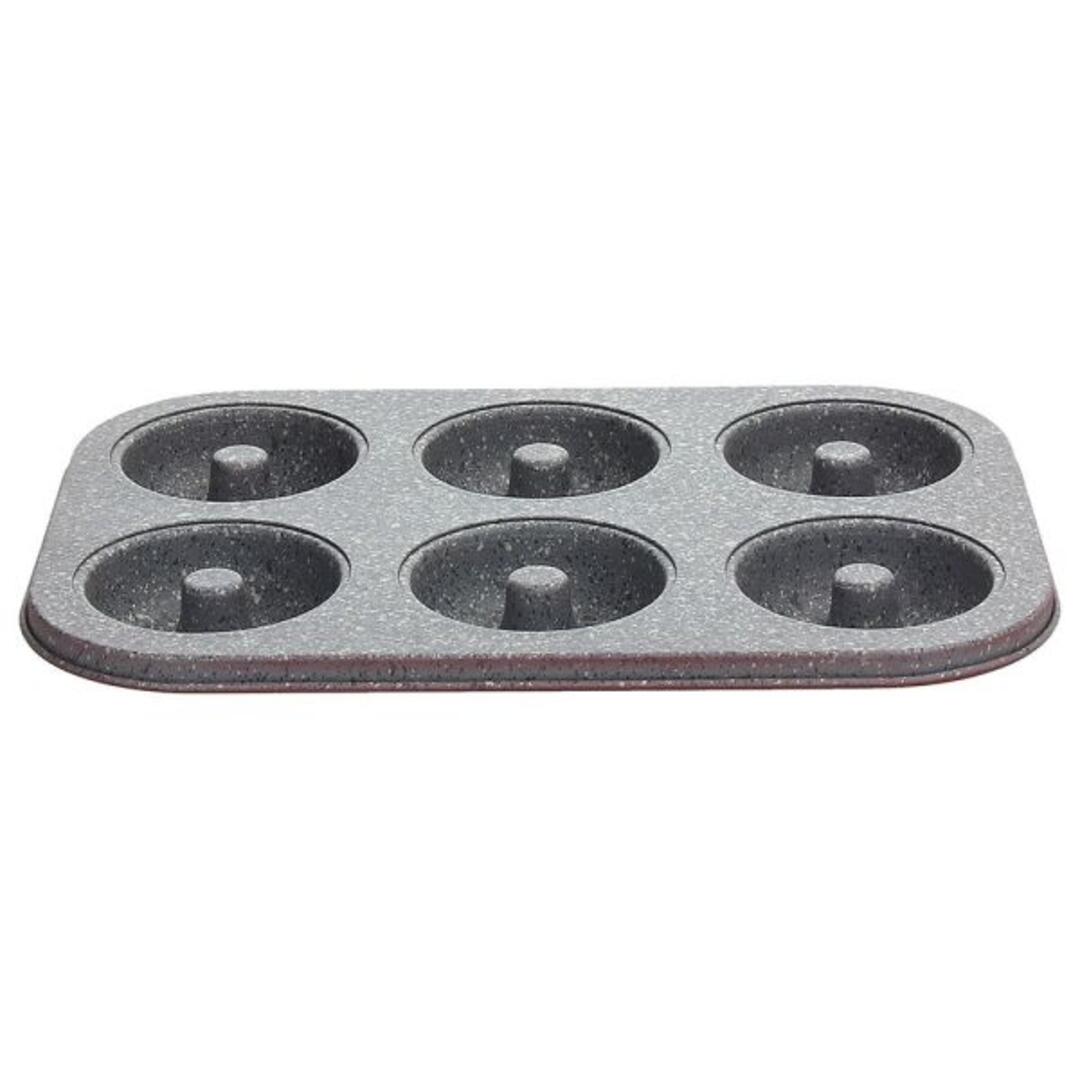Stampo 6 donut Tognana Sweet Cherry rettangolare in alluminio con rivestimento antiaderente 4 strati effetto granito, finitura esterna bordeaux.