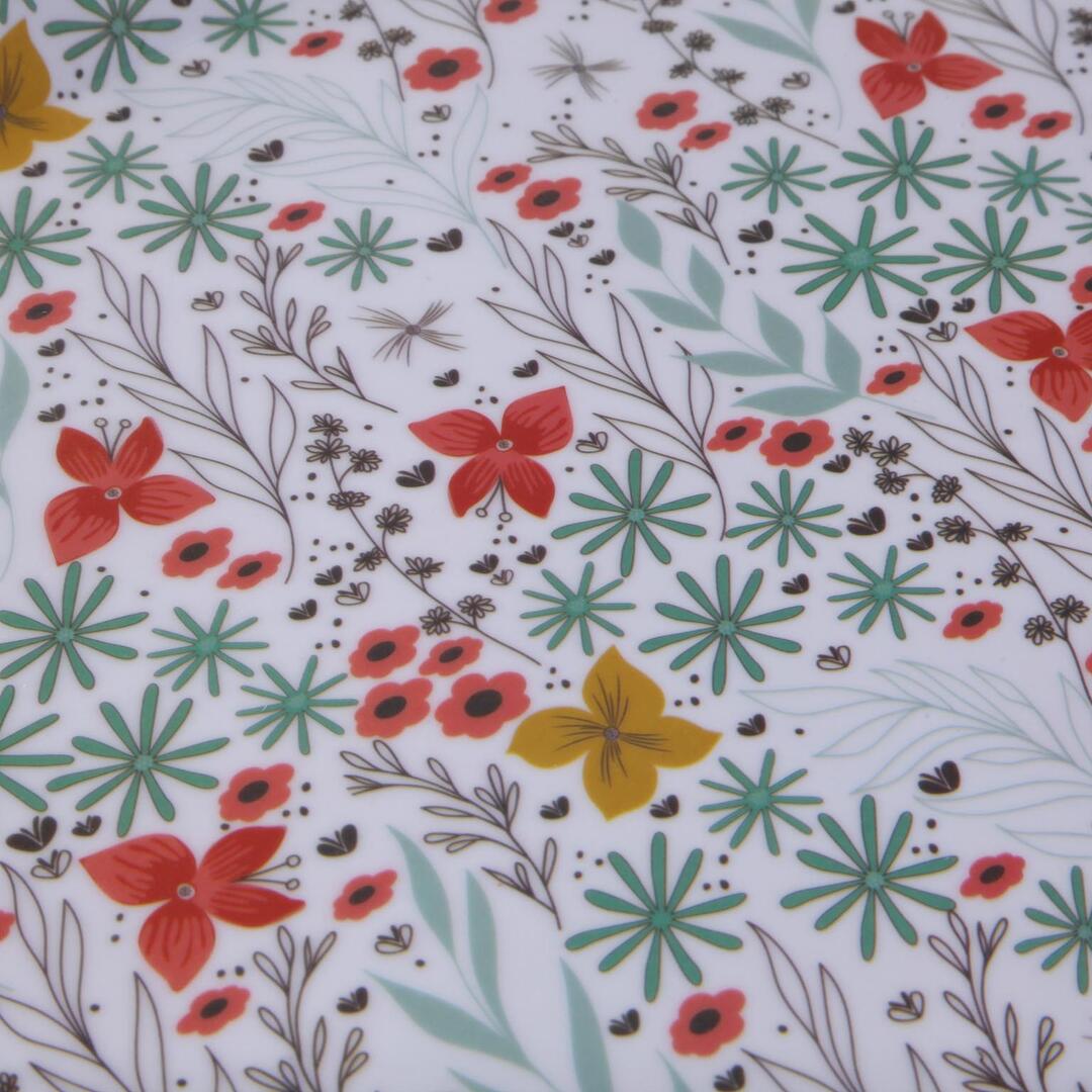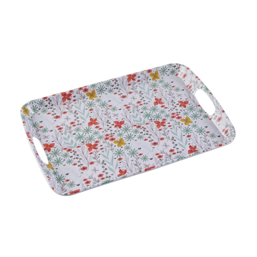 Vassoio Versa Fiorella realizzato in melanina, un materiale resistente e facile da pulire, con decoro motivo floreale.