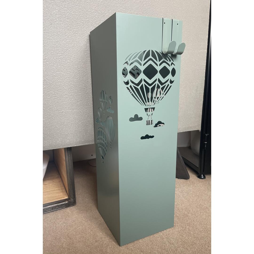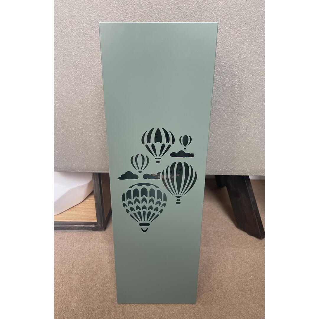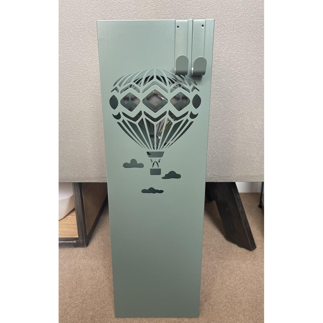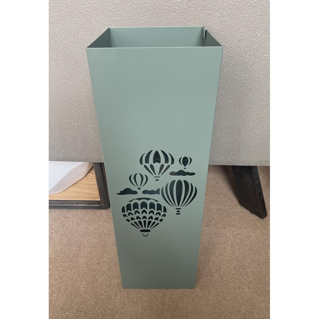 P/ombrelli Montemaggi in metallo base quadrata colore verde salvia con decoro traforato mongolfiere, completo di due gancetti.