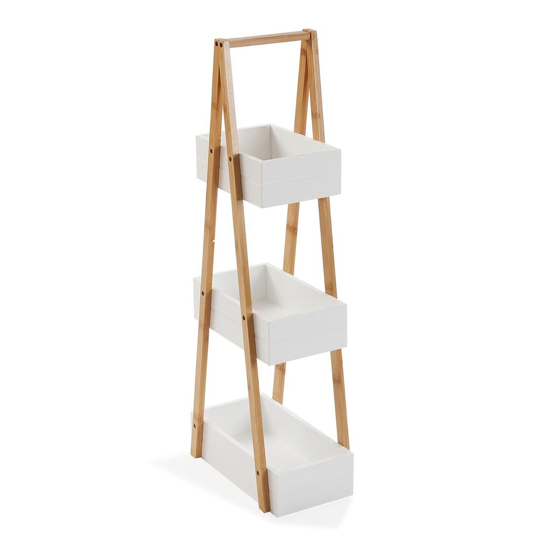 Scaffale con 3 ripiani Versa in legno MDF e bambù finitura naturale/bianco.