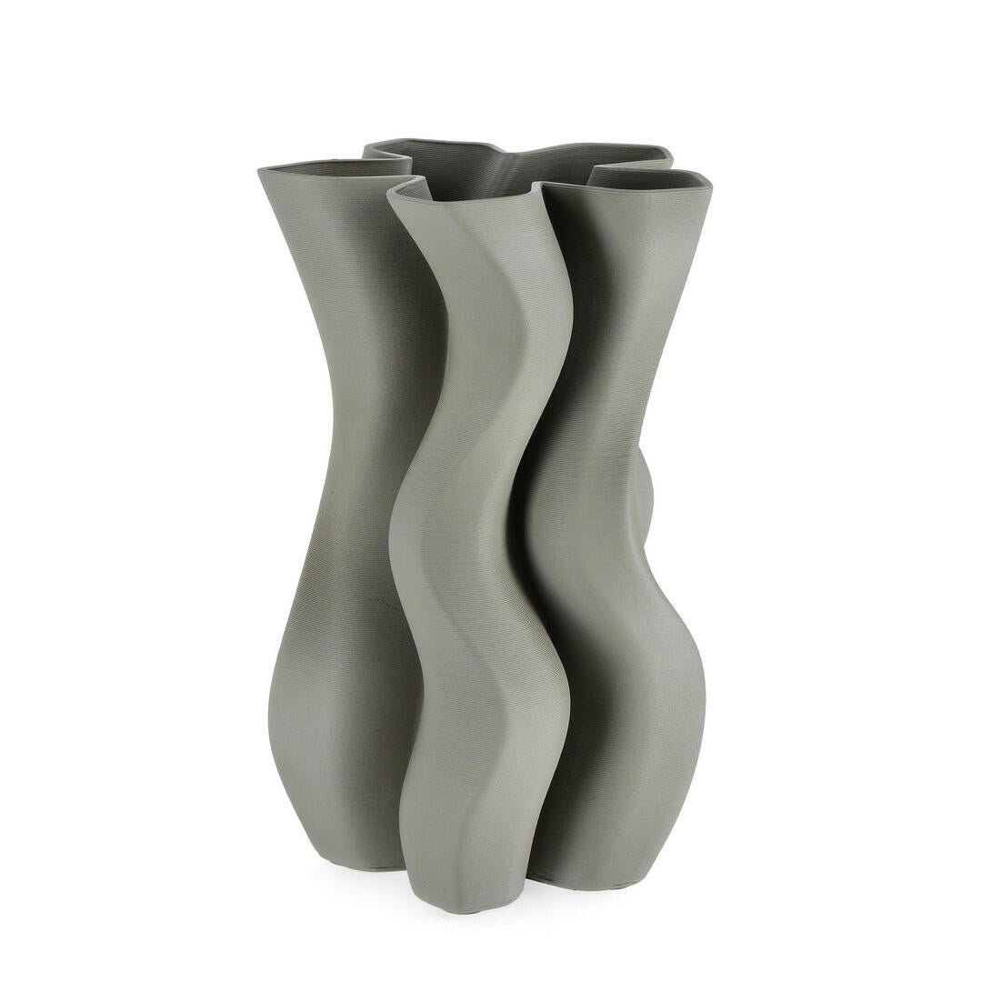 Vaso Bizzotto Reiko in ceramica stampata mediante lavorazione 3D, colore verde fango, impermeabile internamente. Eventuali variazioni di colore, tonalità o imperfezioni sono da considerarsi una caratteristica di unicità del prodotto lavorato artigianalmente.