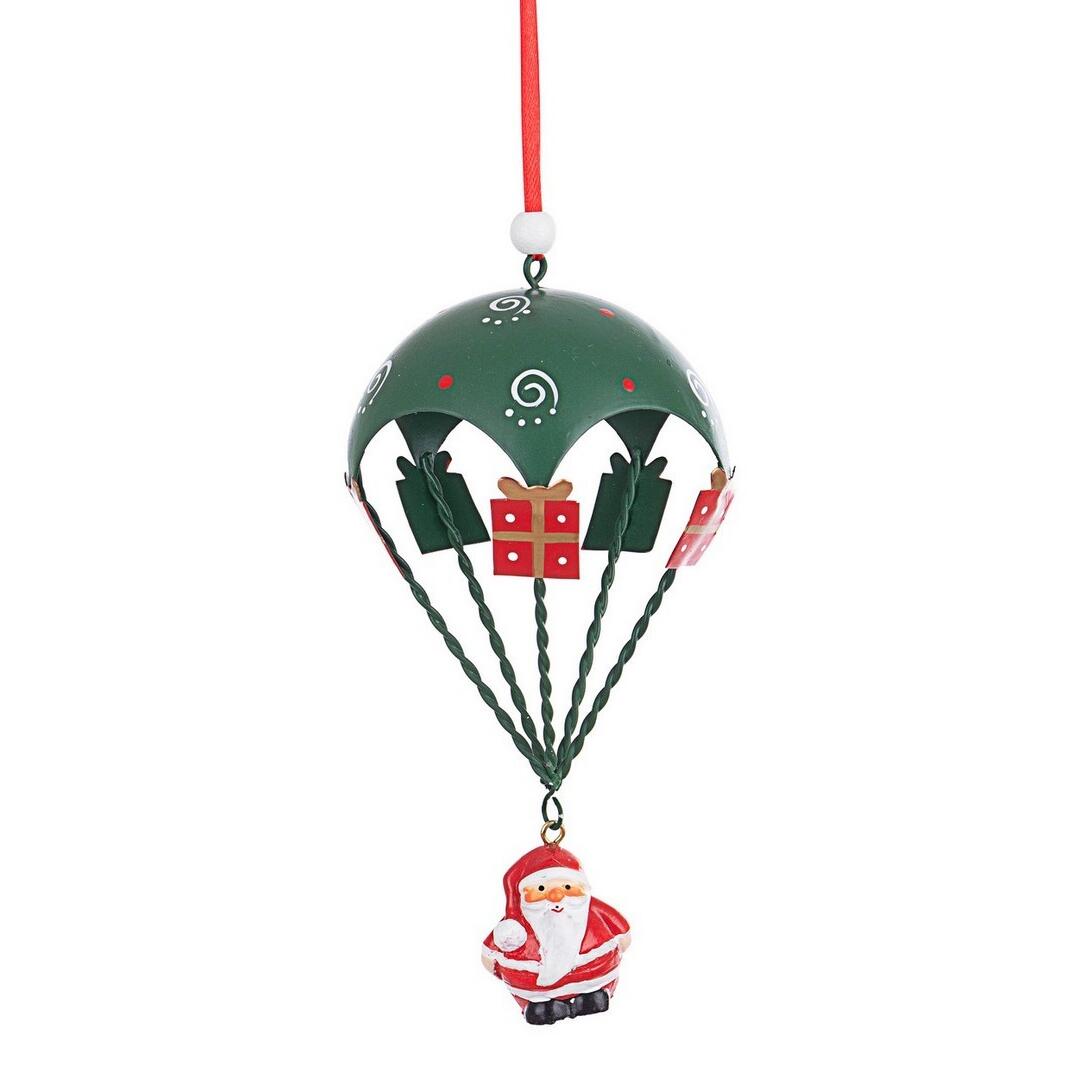 Addobbo paracadute con Babbo da appendere Bizzotto in latta colori rosso/verde/bianco