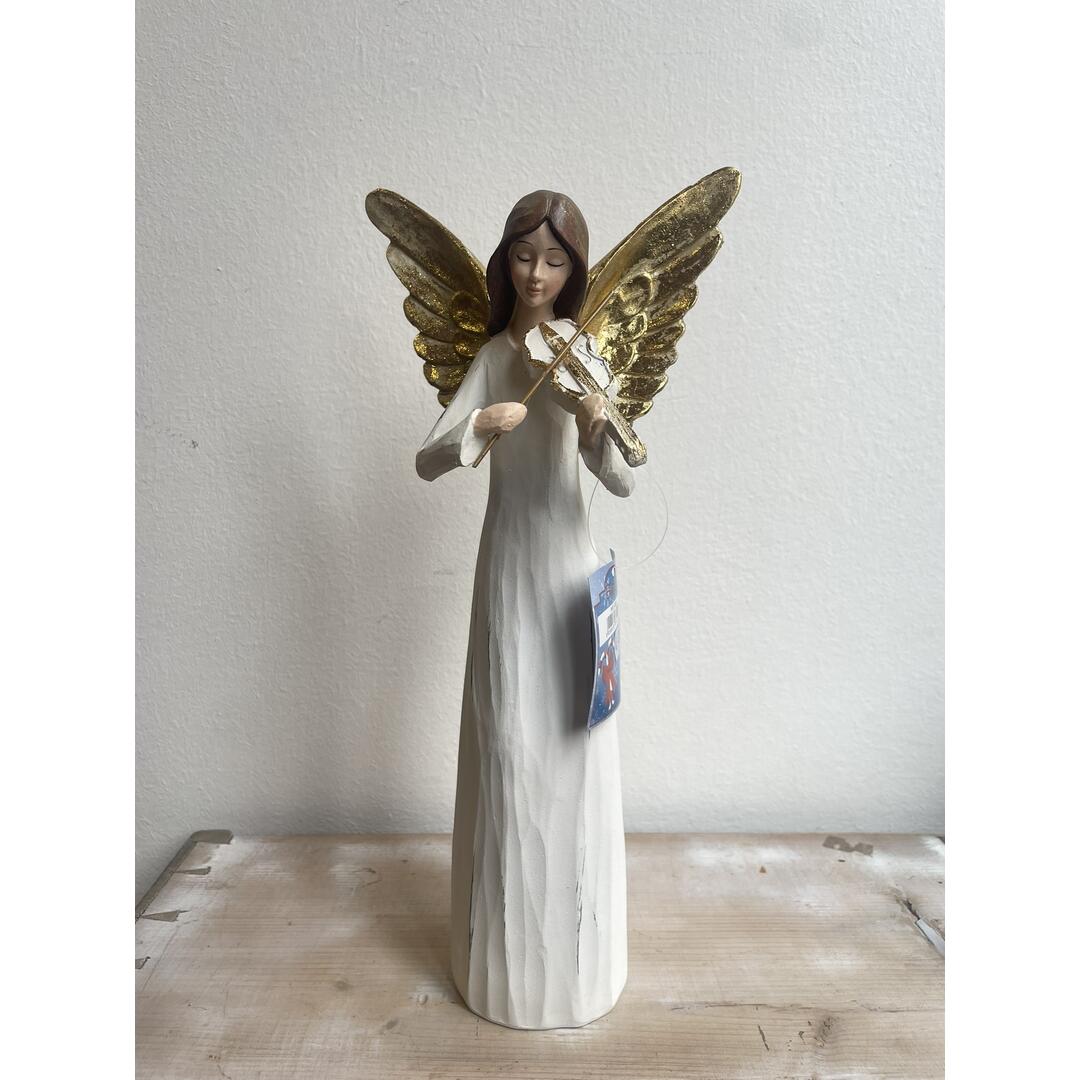 Angelo Elle Gift con violino in poliresina colore bianco con ali e dettagli dorati.