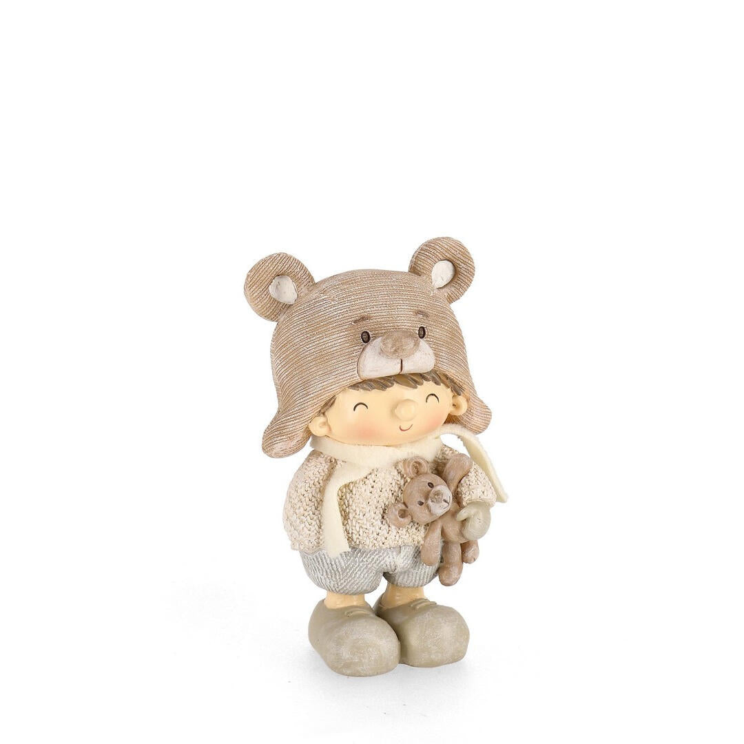 Bimbo Bizzotto Blasco in poliresina colori marrone/beige/grigio con orsetto in mano.