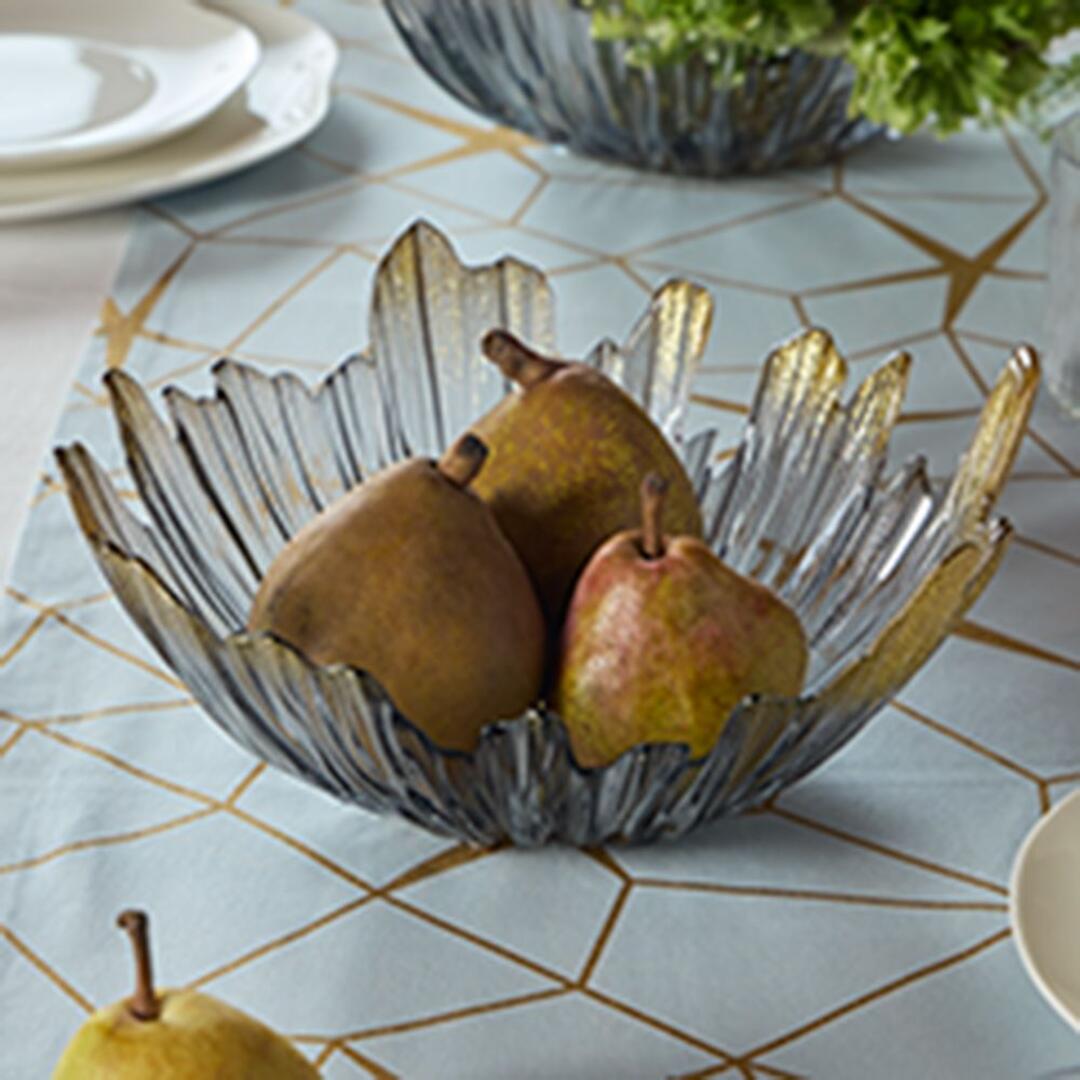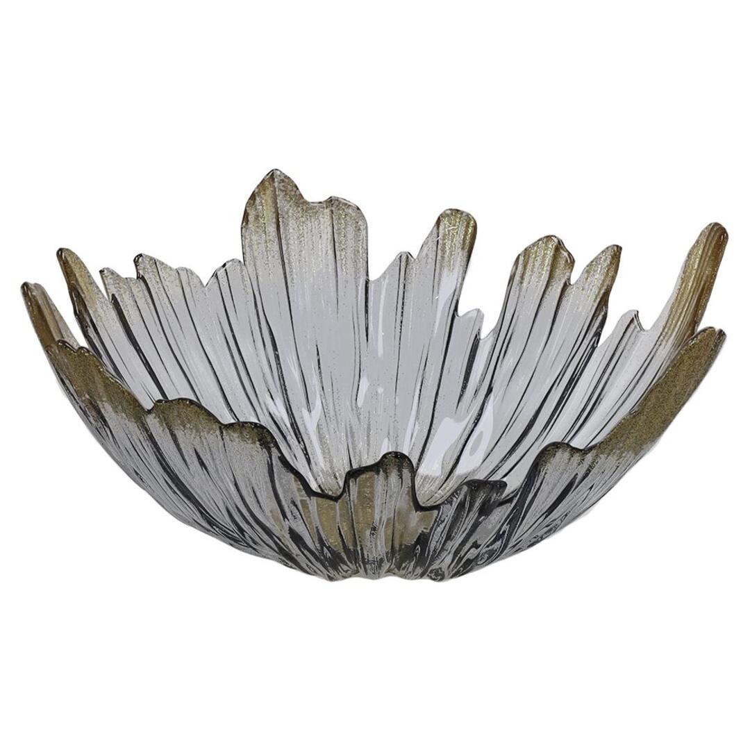 Centrotavola coppa Andrea Fontebasso Galassia Smokey in vetro sfumato colori fumè/oro, forma irregolare.