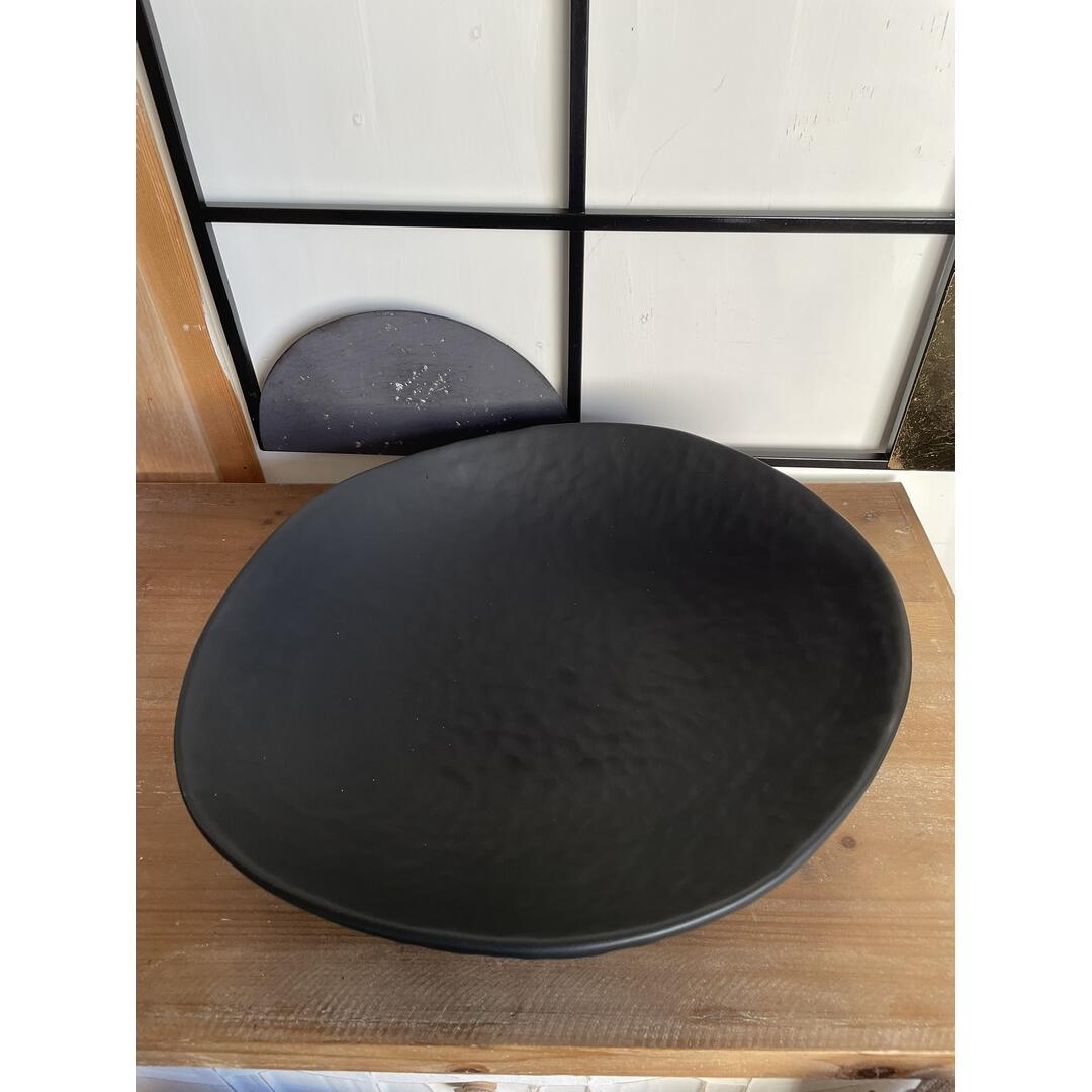 Centrotavola di Ceramiche Conte in ceramica finitura nero opaco con forma irregolare e effetto martellato.