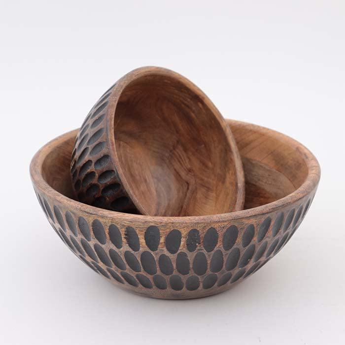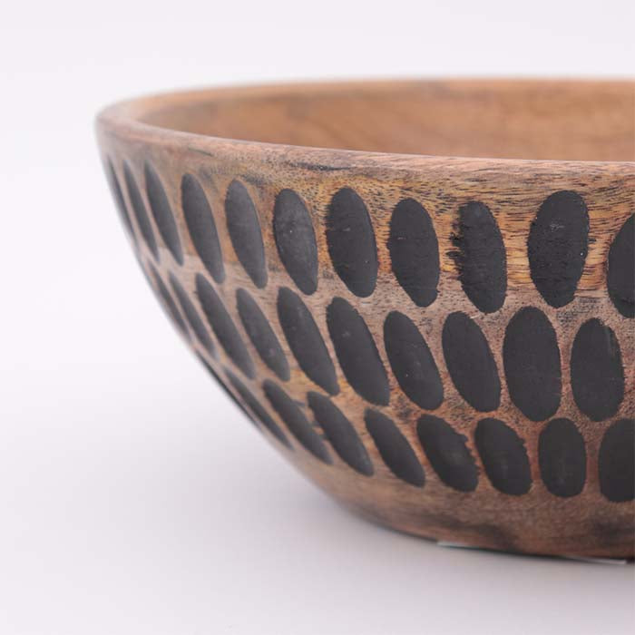 Ciotola centrotavola Innoavliving Sybil black in legno naturale con decorazione esterna intagliata geometrica colore nero