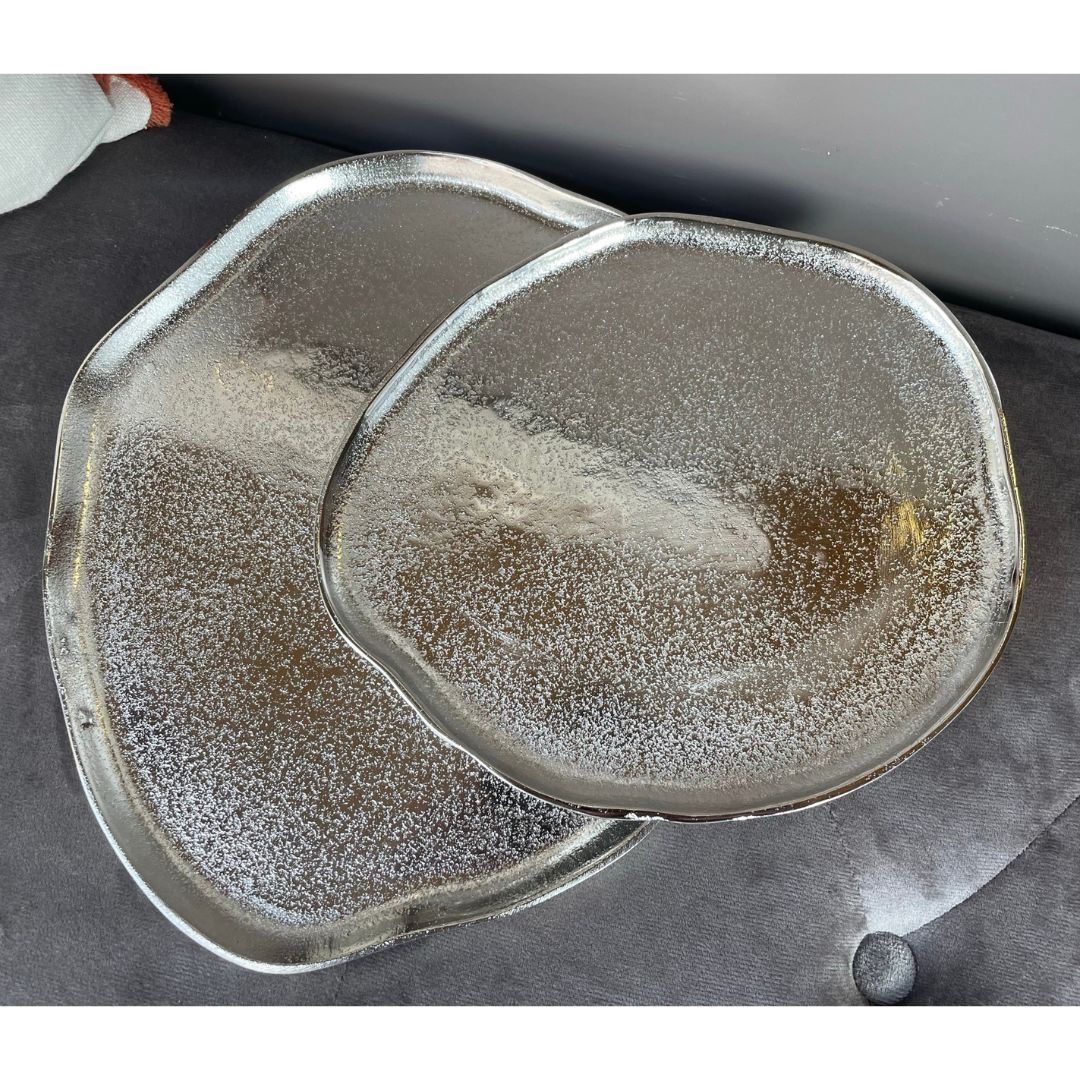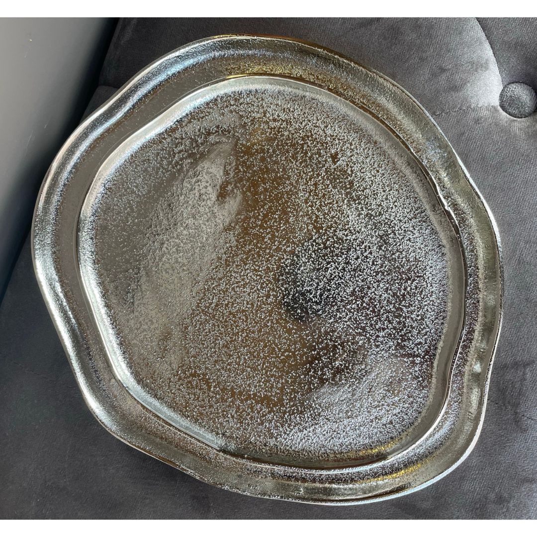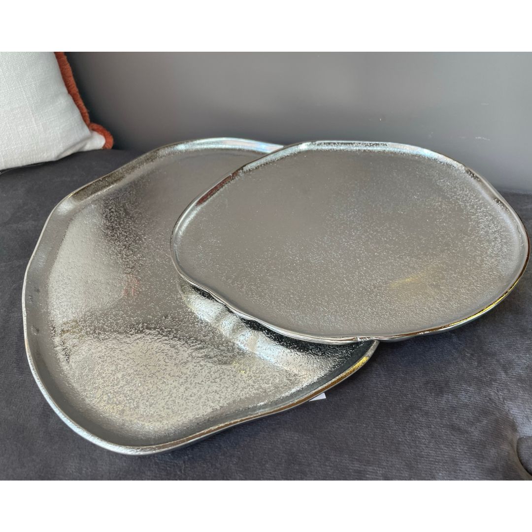 Centrotavola/svuota tasche Innovaliving in metallo finitura silver forma irregolare