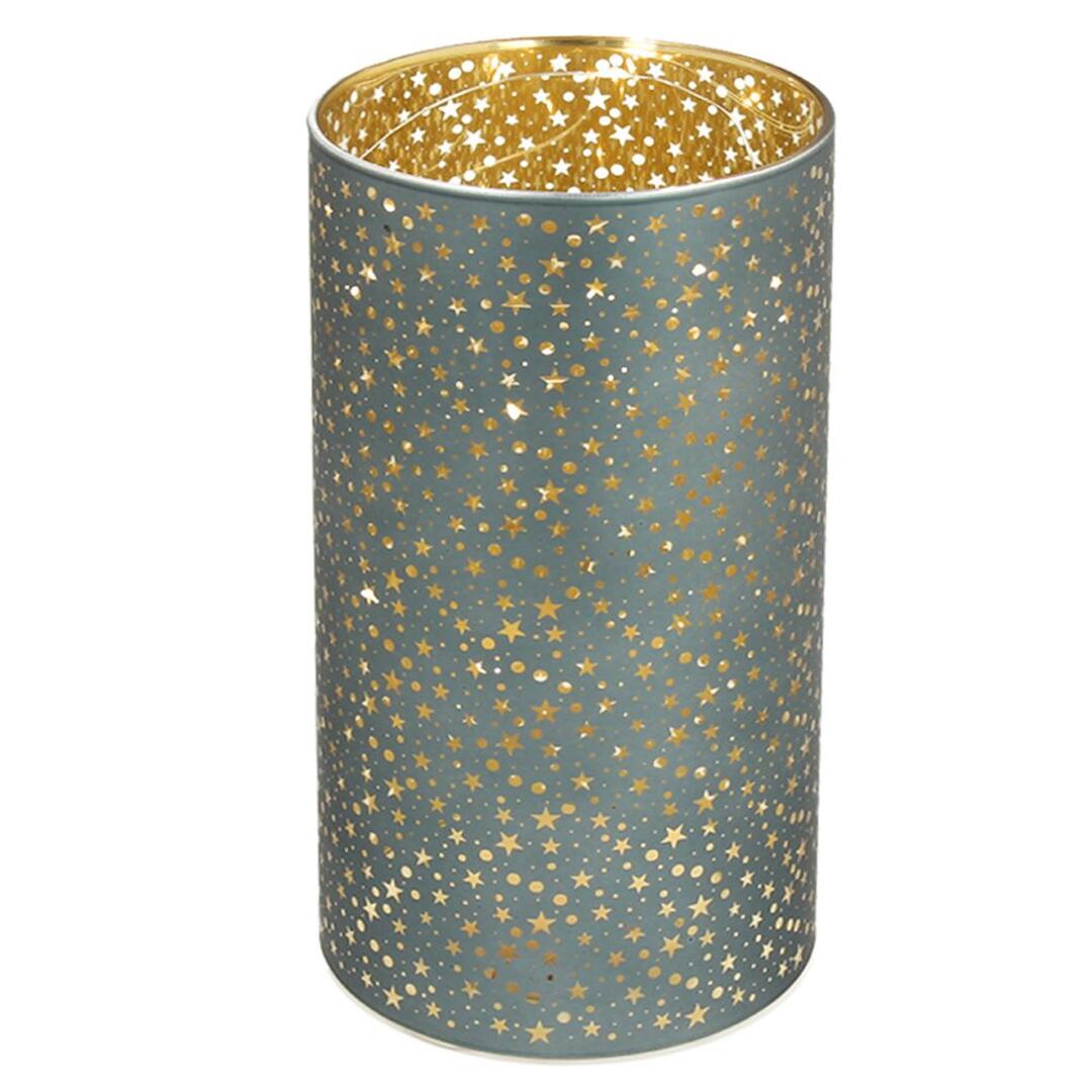 Cilindro con led a batteria Andrea Fontebasso in vetro colore grigio con interno oro decoro stelline.