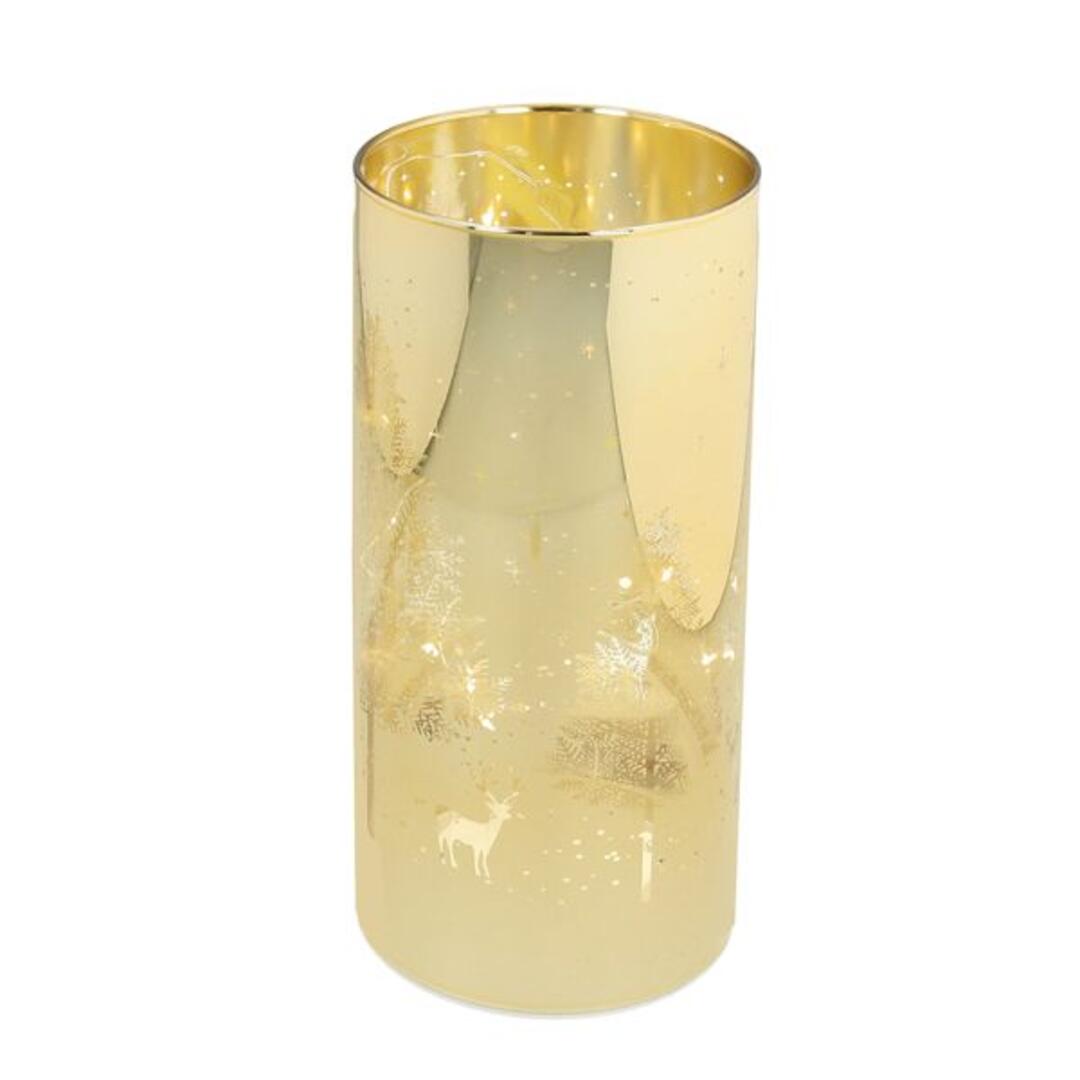 Cilindro con led a batteria Andrea Fontebasso in vetro colore oro finitura lucida, con decoro abeti e cervi.