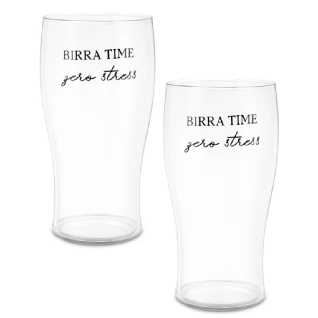 Coppia bicchieri da birra La Porcellana Bianca collezione I Garbati, realizzati in vetro trasparente con scritta nera, dal design elegante e funzionale, perfetto per servire birre e bevande fredde con stile. Realizzati con vetro di qualità, che garantisce durabilità e trasparenza cristallina.