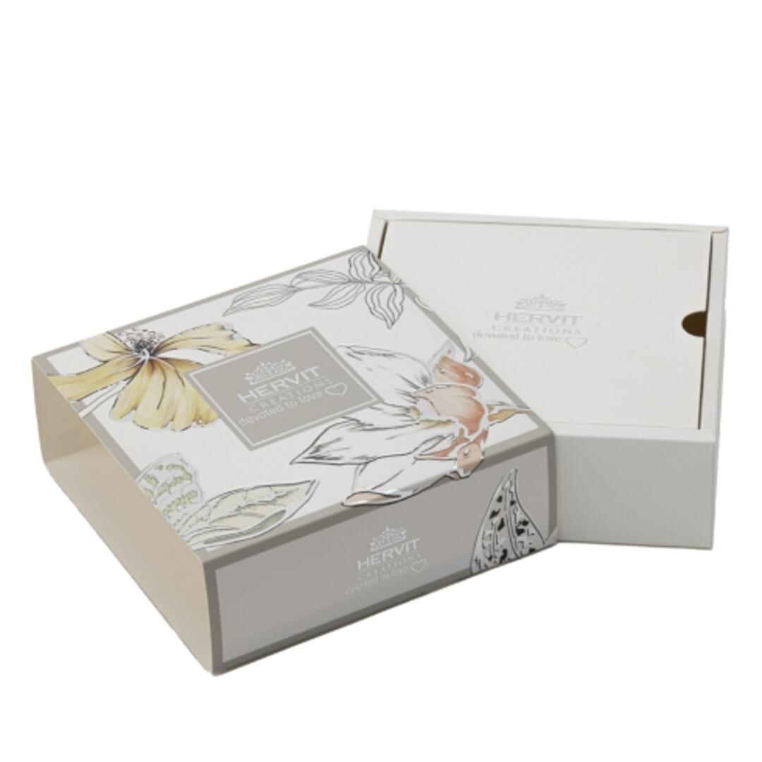 Prodotto completo di scatola regalo marcata Hervit decoro floreale