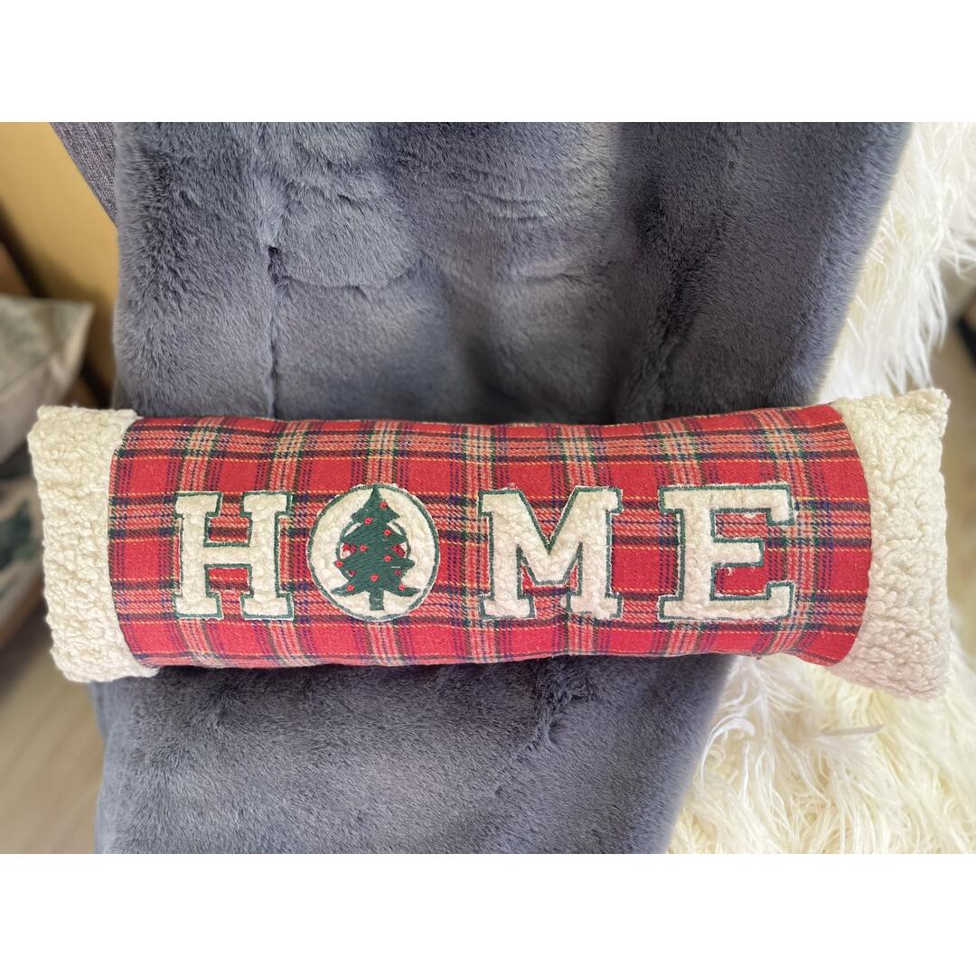 Cuscino/paraspifferi Elle Gift rettangolare colore rosso decoro tartan con scritta Home completo di imbottitura e sfoderabile
