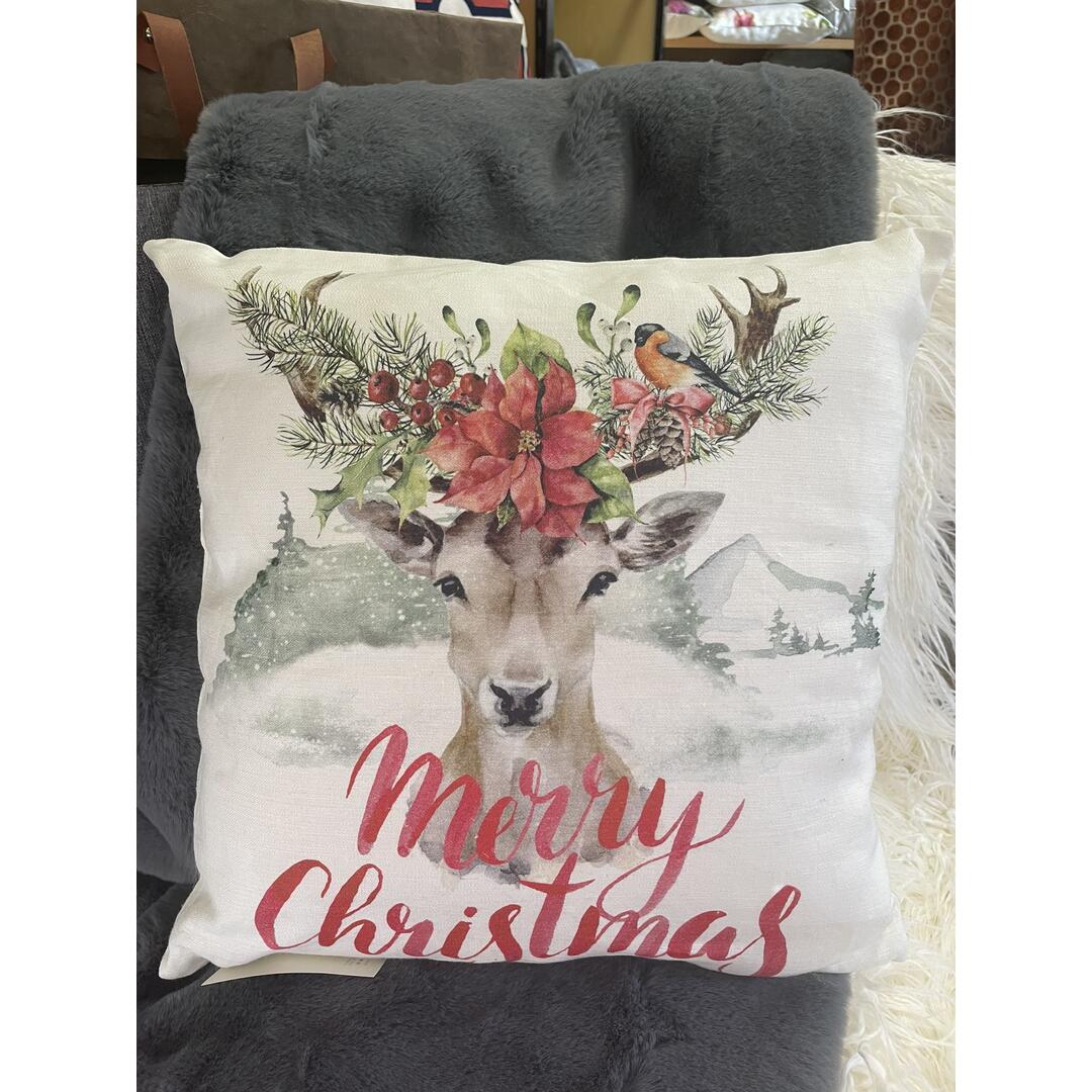 Cuscino quadrato New Diffusion sfoderabile completo di imbottitura decoro cervo con scritta natalizia