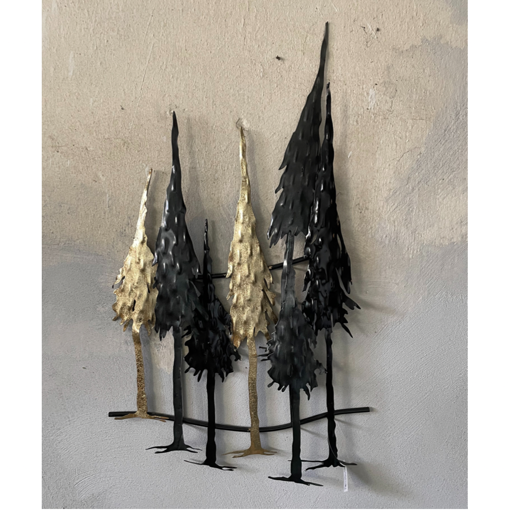 Decorazione parete in metallo con alberi colore nero/oro