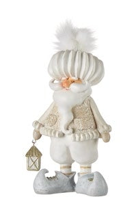 Gnomo Oca Nera "I Sultani" in resina sui toni eleganti del bianco/argento con lanternina e berretto con pon-pon