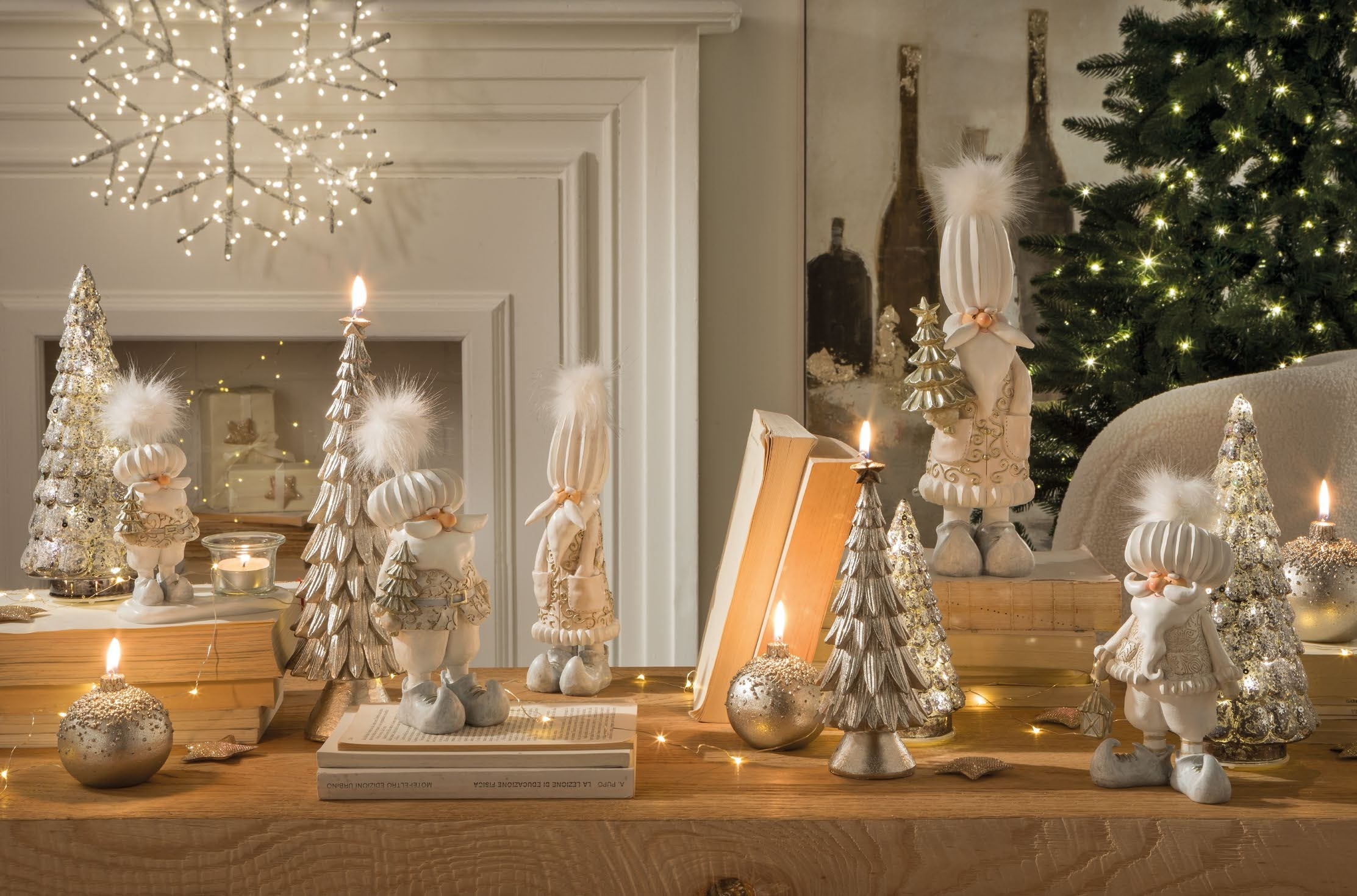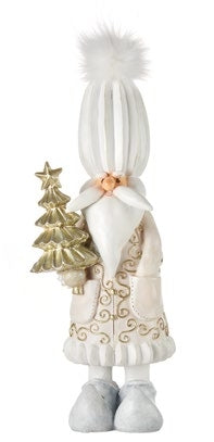 Gnomo Oca Nera "I Sultani" in resina sui toni eleganti del bianco/argento con alberello di Natale e berretto con pon-pon bianco