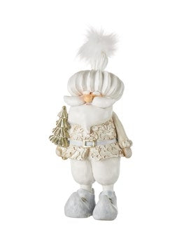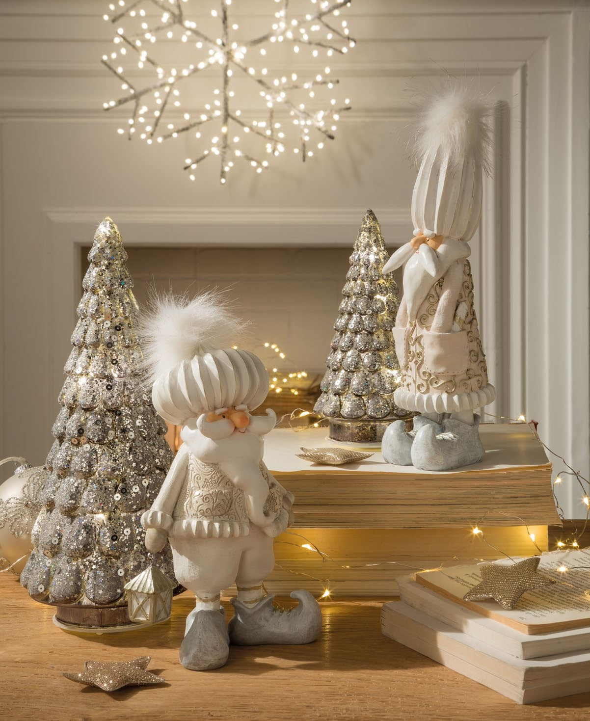Gnomo Oca Nera "I Sultani" in resina sui toni eleganti del bianco/argento con alberello di Natale e berretto con pon-pon