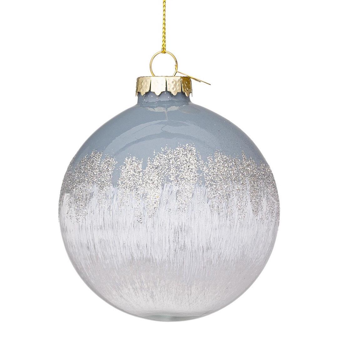Maxi sfera Bizzotto in vetro colori avio/argento brillantinato e bianco decoro sfumato.