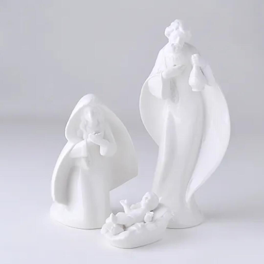 Natività Hervit (3 pezzi) in porcellana con finitura lucida su tutti i vestiti e opaca sui volti e le mani.