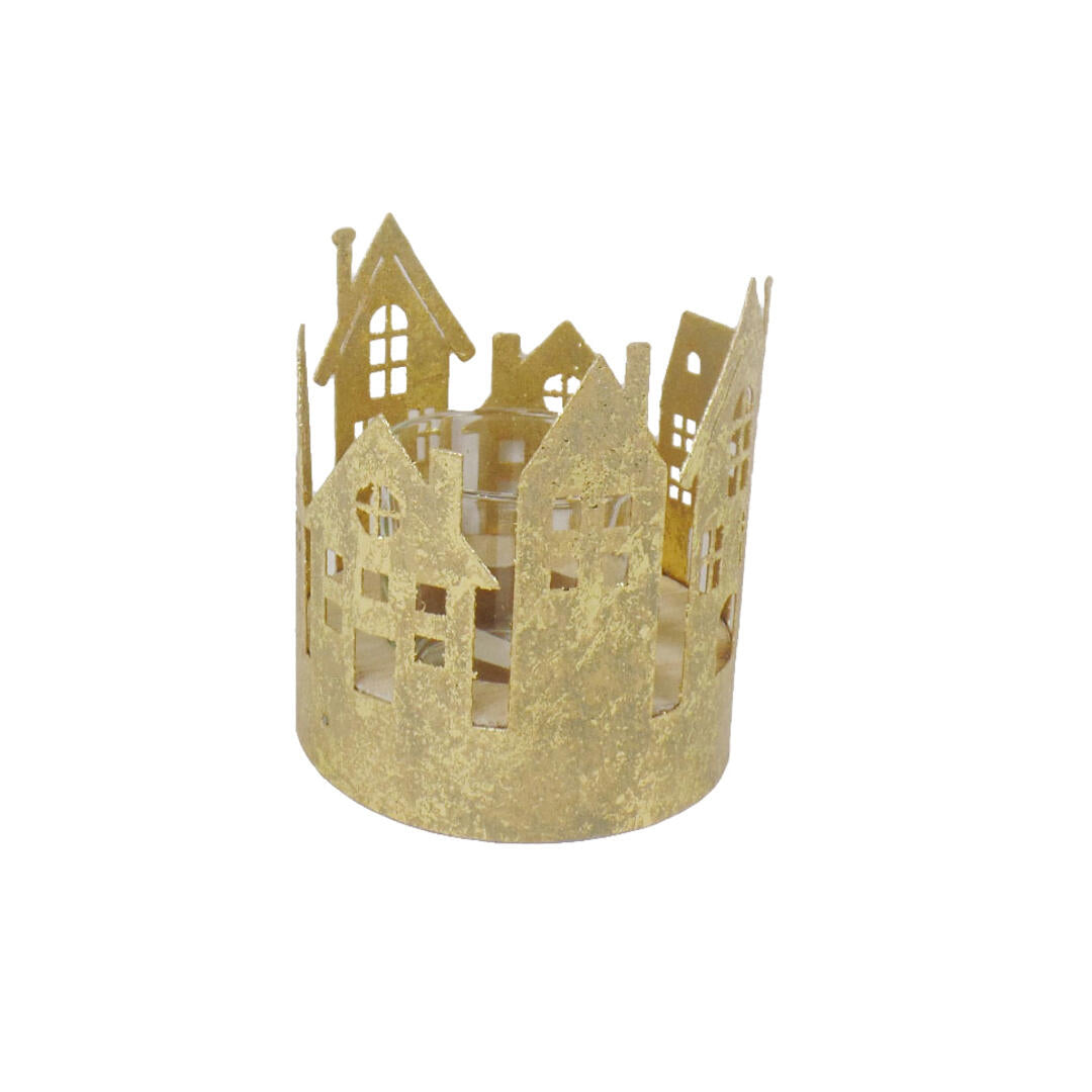 Porta candela Elle Gift decoro Villaggio in metallo finitura oro opaco