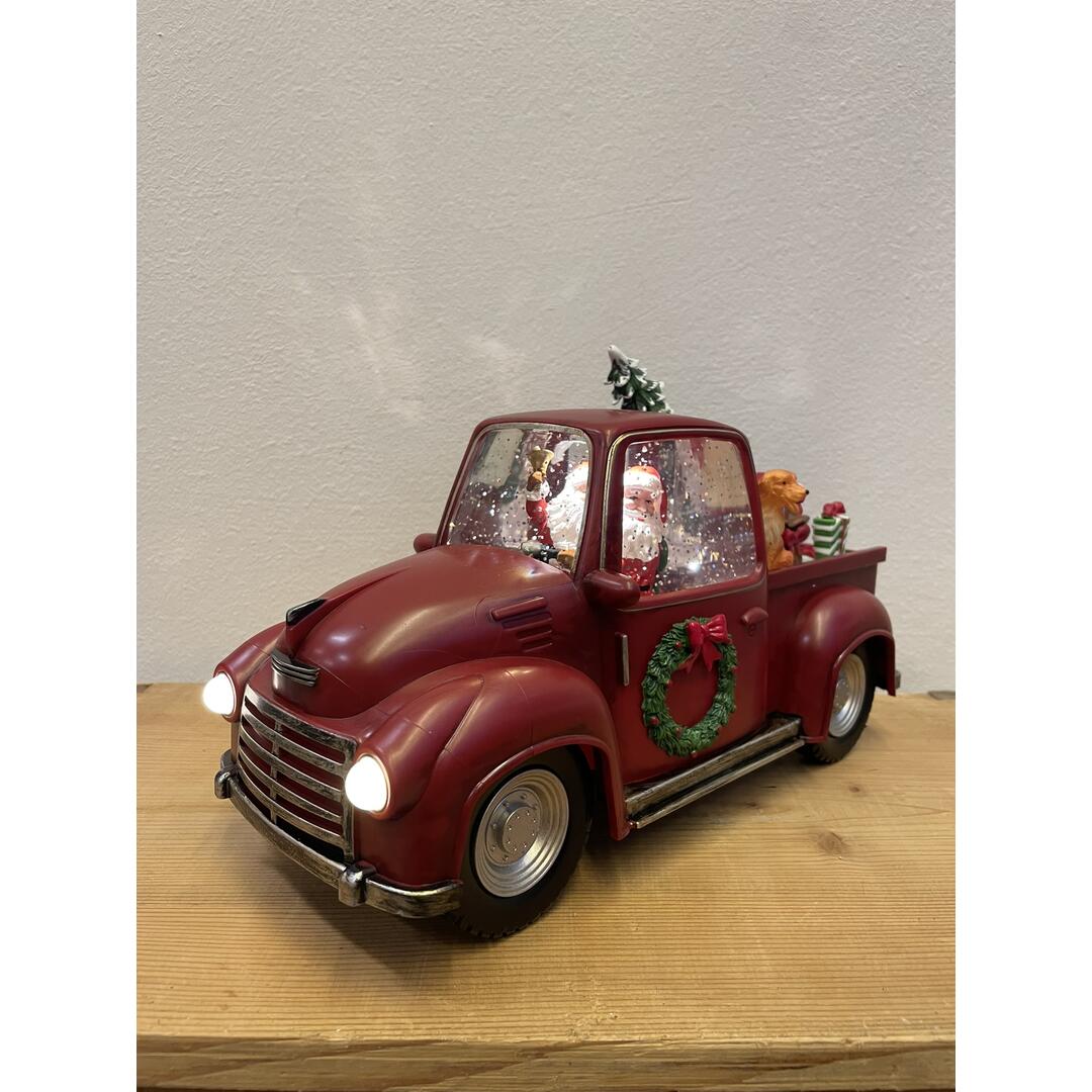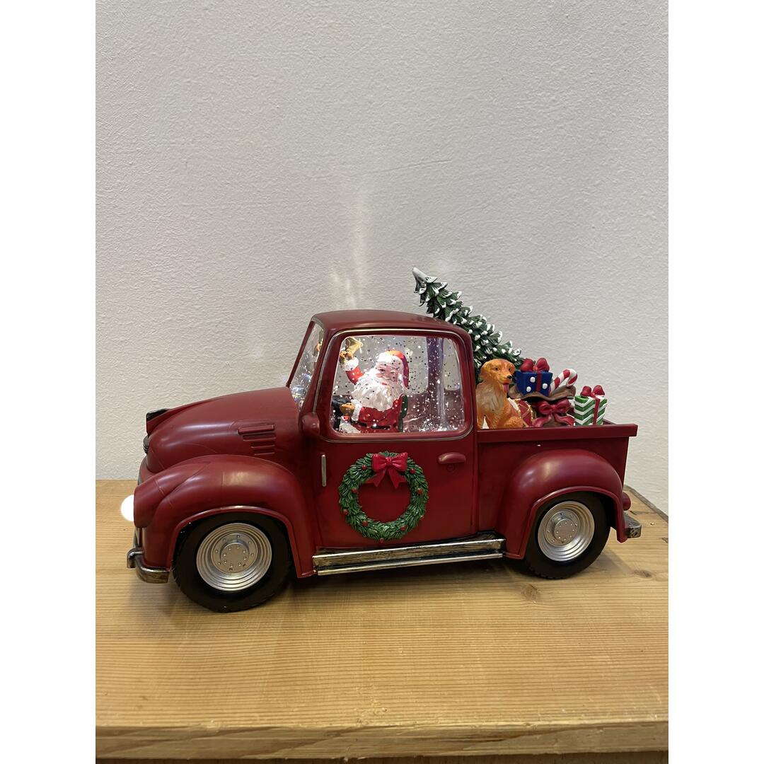 Pick up Babbo Natale Hervit in poliresina colore rosso con albero, cagnolino e pacchi regalo nel cassone.
