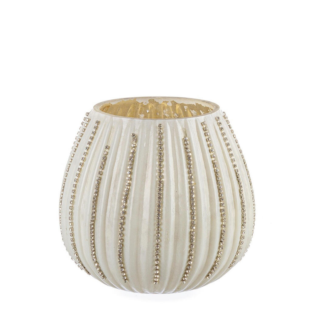 Porta candela Bizzotto Wiktor in vetro colore esterno bianco con dettagli brillantinati in rilievo e interno dorato.