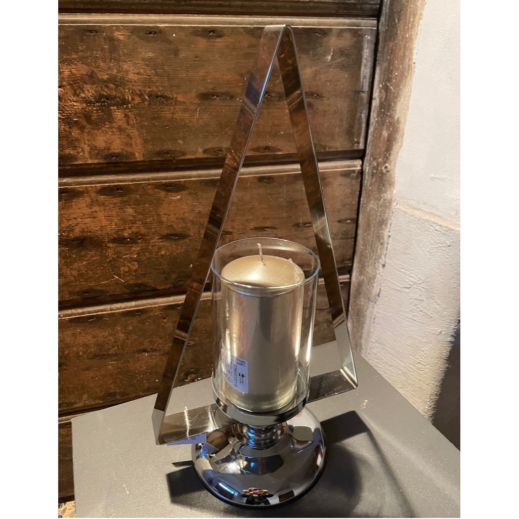 Albero porta candela Hervit in acciaio inox con cilindro in vetro