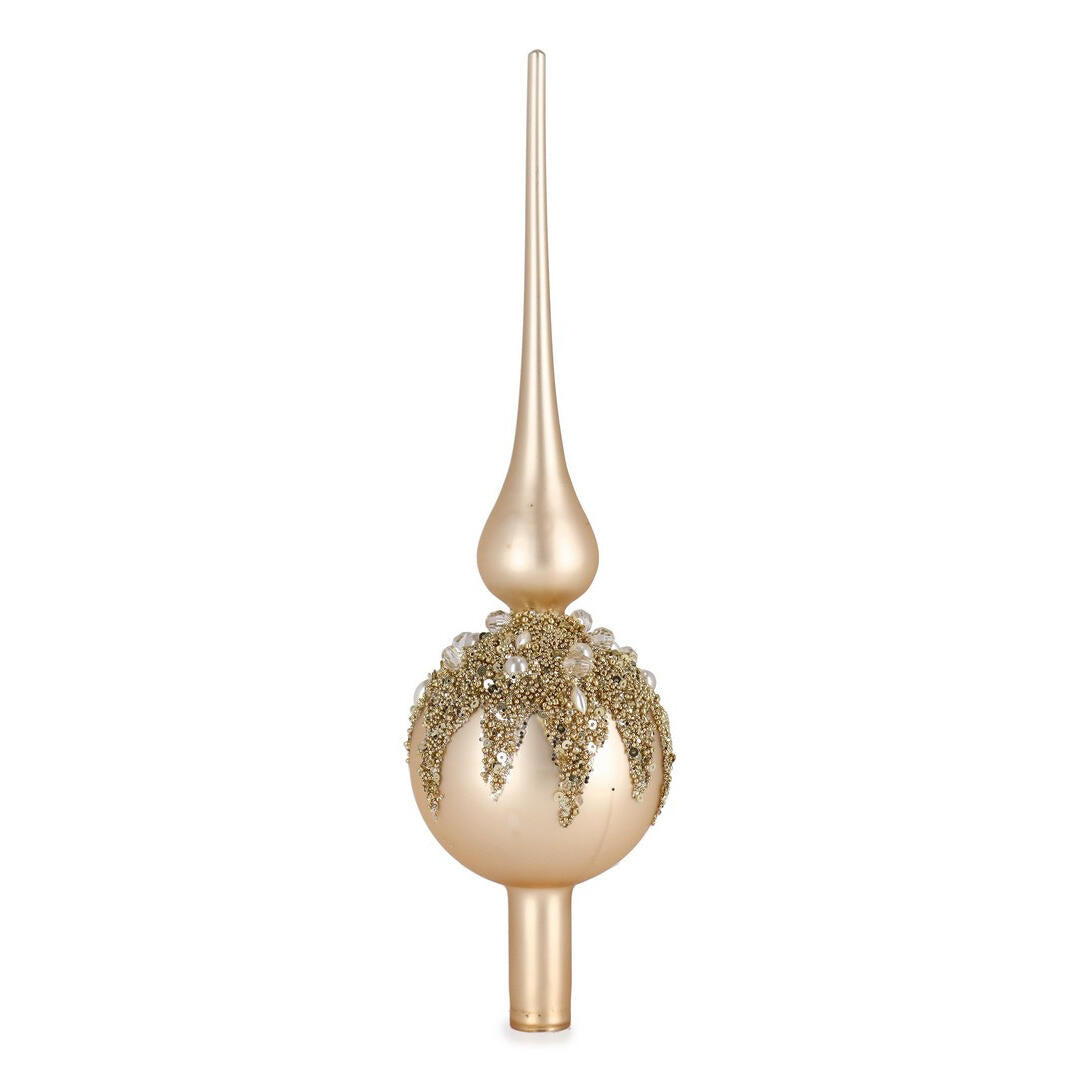 Puntale per albero Bizzotto Imperial in vetro colore champagne con decorazione di brillantini e perline in rilievo.
