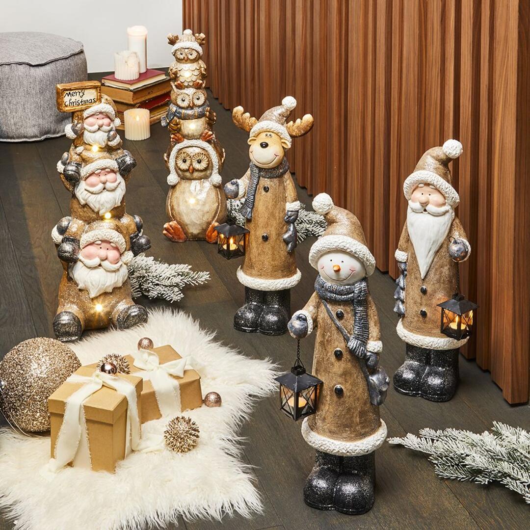 Renna Andrea Fontebasso in ceramica finitura champagne con lanternina in mano completa di candela