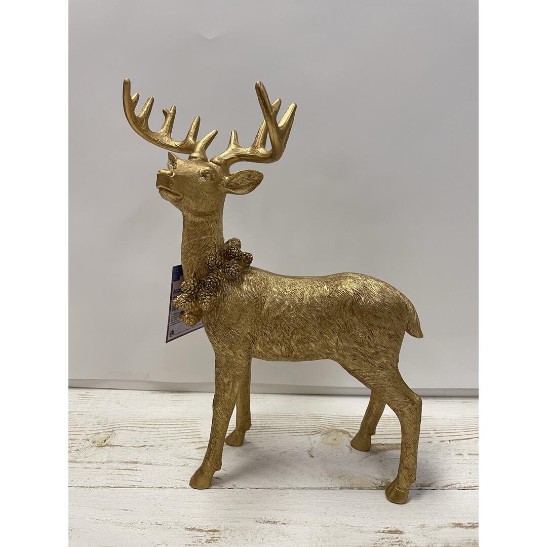 Renna in piedi Elle Gift in resina finitura oro con pigne