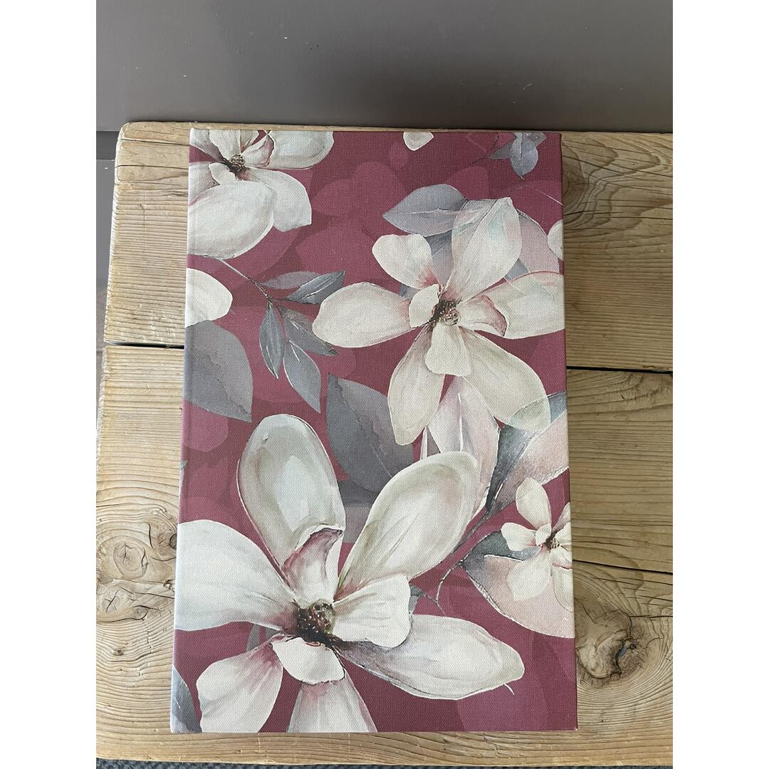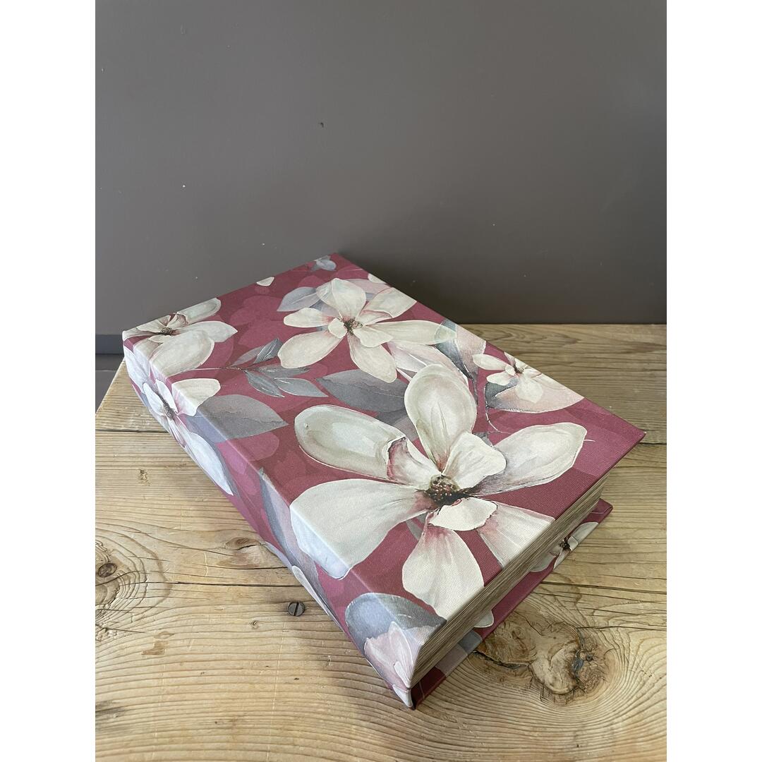 Scatola libro Innovaliving Jasmine in MDF decoro floreale colori bordeaux/marrone/ecrù, chiusura magnetica, internamente rivestita in vellutino