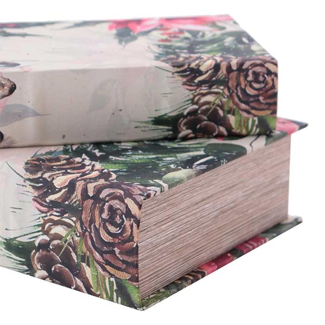 Scatola libro Innovaliving Noel in MDF decoro agrifoglio e stelle di Natale colori rosso/verde/marron su base ecrù con chiusura magnetica internamente rivestita in velluto