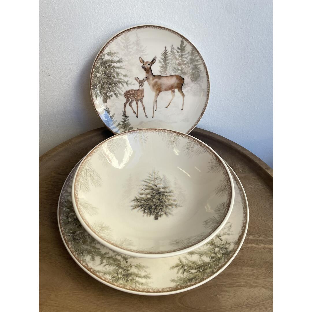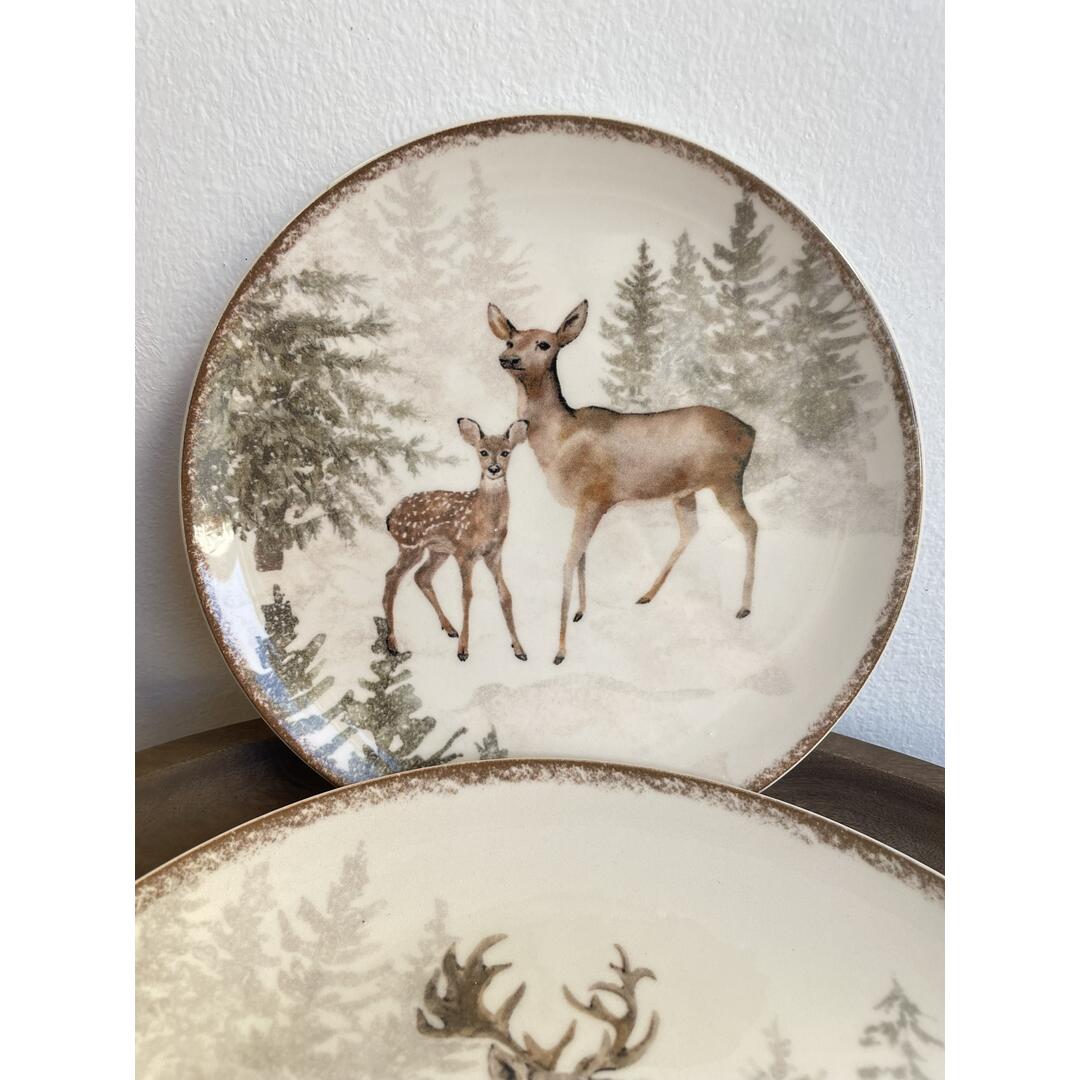 Servizio tavola H&H Magical Deer in stoneware con decoro stile nordico assortito nei toni del marrone/grigio/avorio/verde bosco.