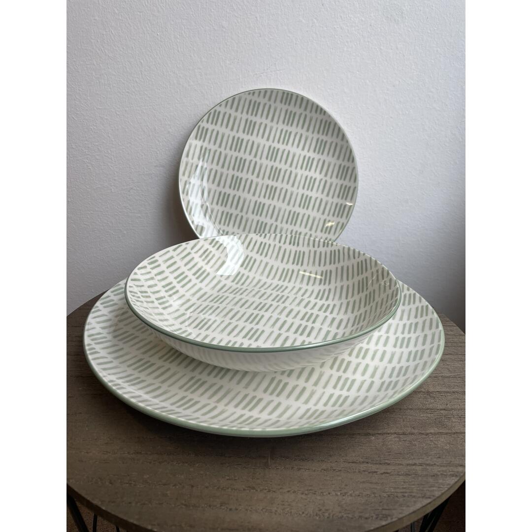 Rinnova la tua tavola con questo elegante servizio tavola Golf dal design minimal e moderno. Realizzato in porcellana, presenta un design moderno con un motivo a righe verde salvia su fondo bianco. Ideale per l'uso quotidiano e per le occasioni speciali.