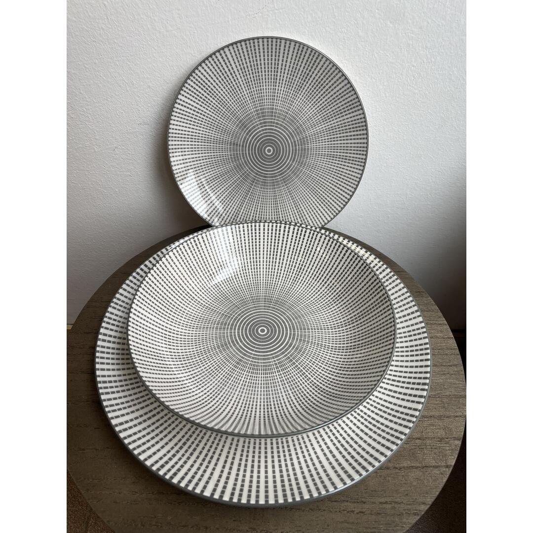 Rinnova la tua tavola con questo elegante servizio tavola Spider dal design minimal e moderno. Realizzato in porcellana, ogni pezzo presenta un affascinante motivo geometrico radiale in tonalità di grigio e bianco. Ideale per l'uso quotidiano e per le occasioni speciali.