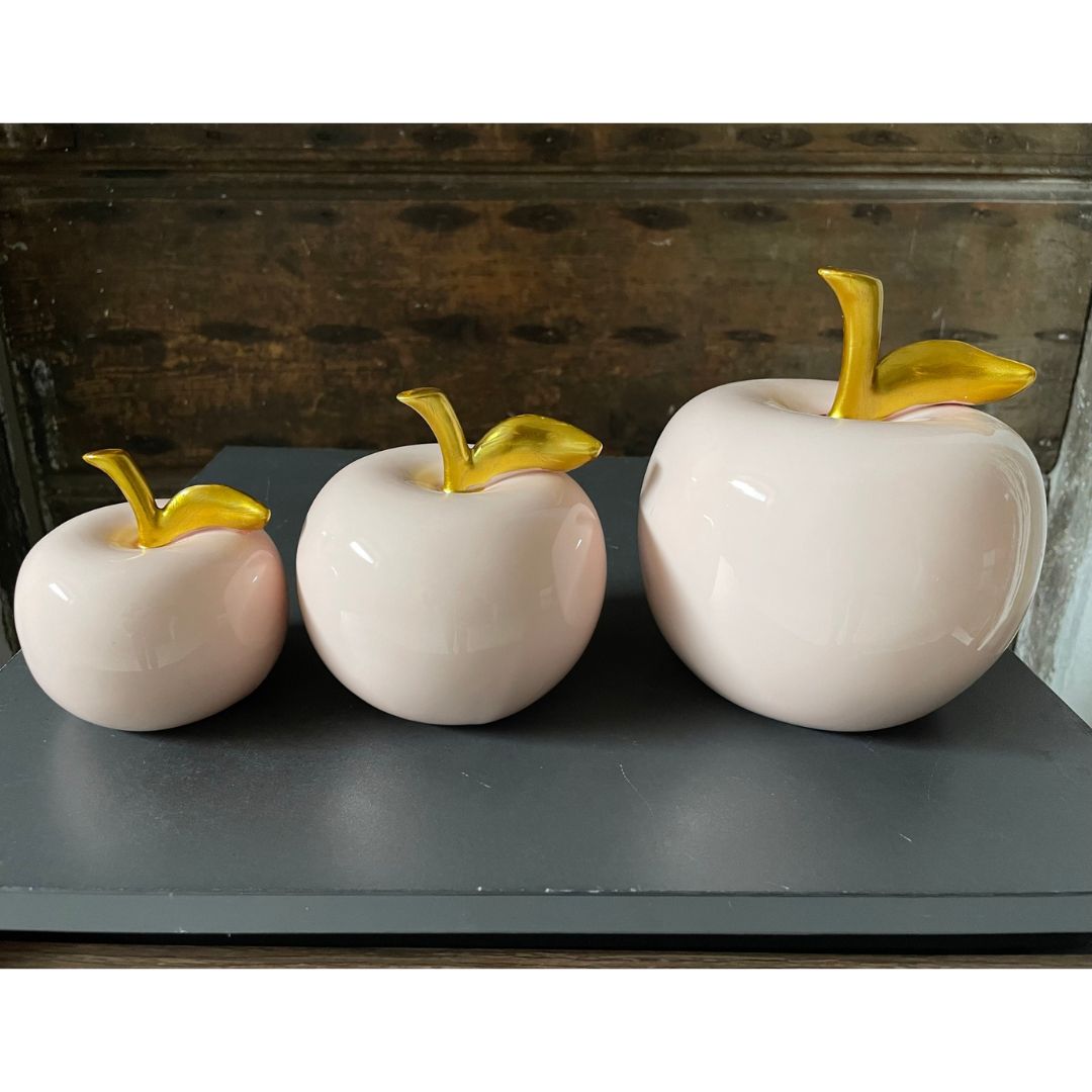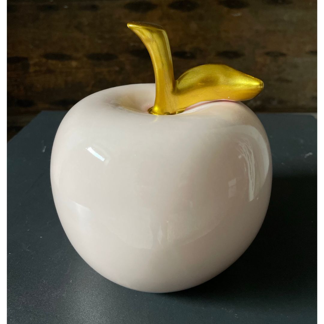Mela Andrea Fontebasso in ceramica colore rosa chiaro con picciolo oro