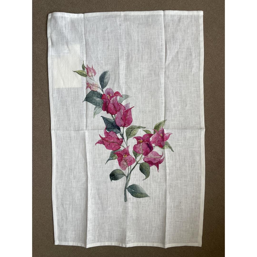 Strofinaccio New Diffusion decoro bouganville in 100% puro lino.