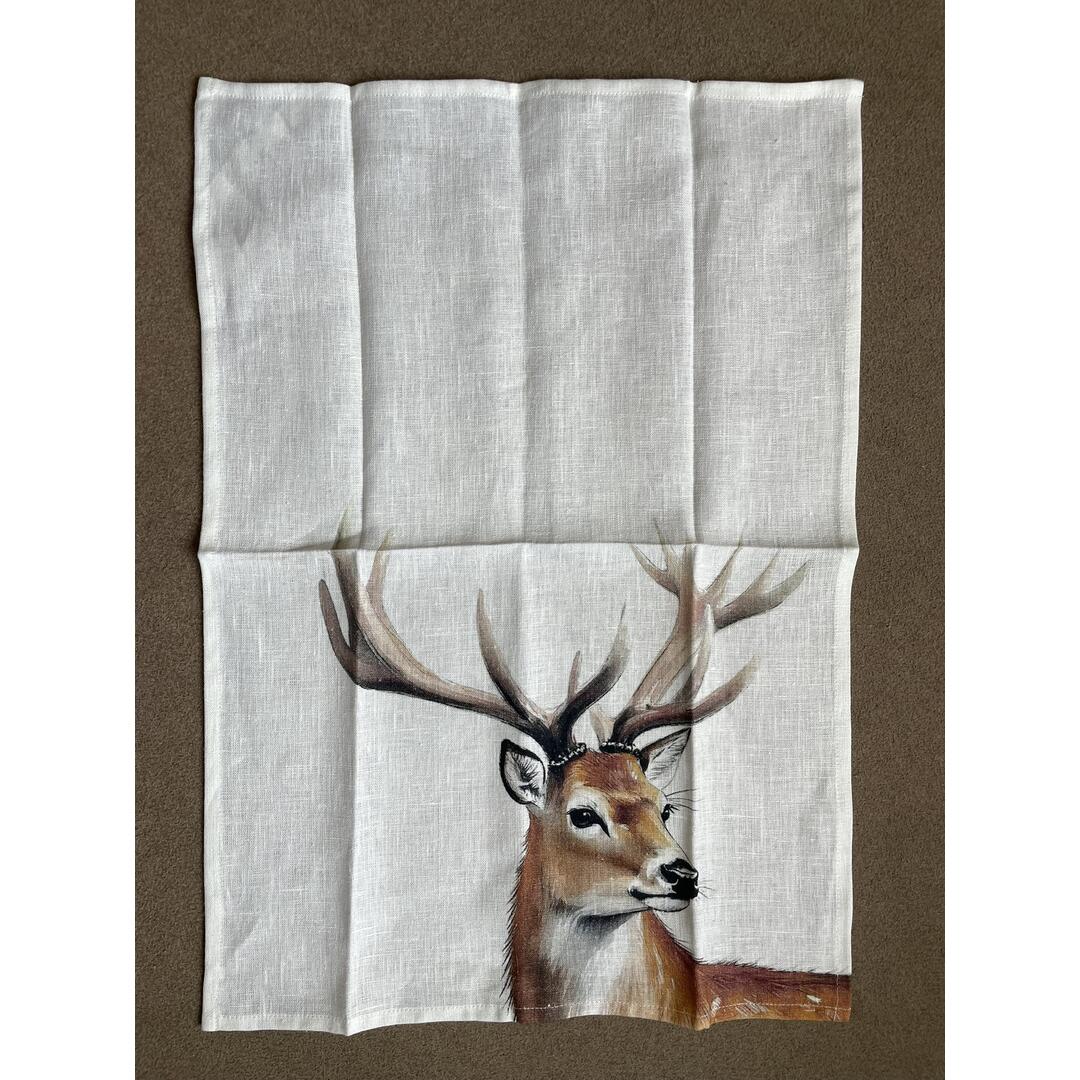 Strofinaccio New Diffusion decoro cervo in 100% puro lino.