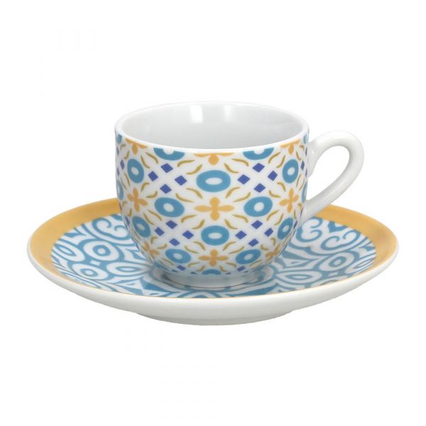 Servizio caffè Tognana Alicante in porcellana con piattino decoro geometrico colori azzurro, giallo, bianco