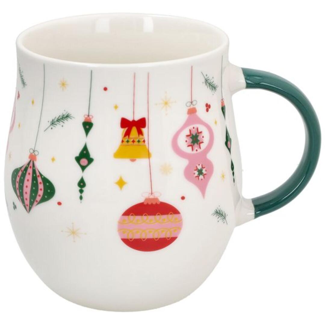 Tazza mug Andrea Fontebasso Darling in porcellana bianca, dalla forma sinuosa e bombata, con decoro natalizio charms colori rosso e verde.