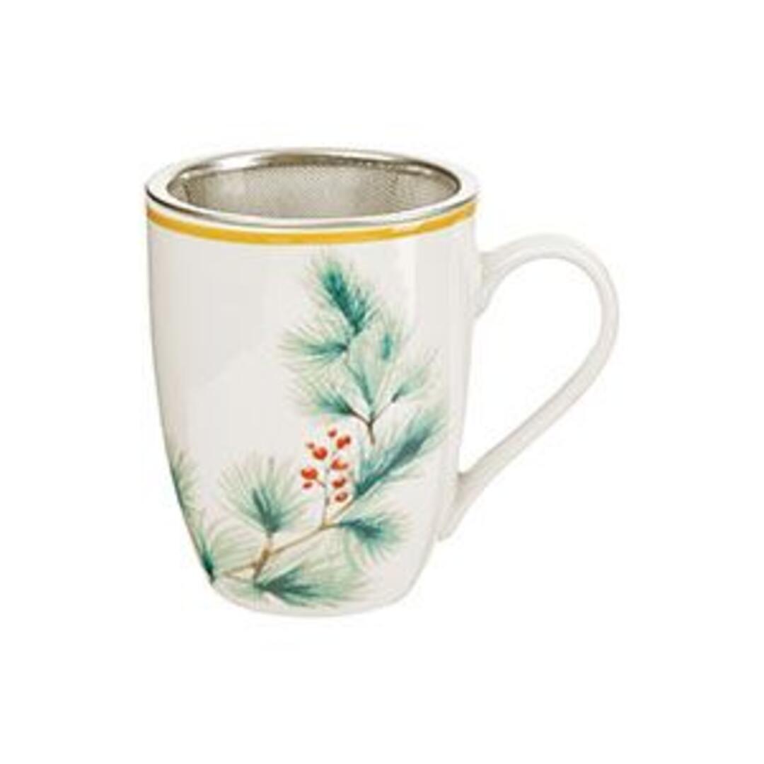 Tisaniera Evviva Bacche in porcellana bianca con decoro rosso/verde e bordino oro completa di filtro in metallo coperchio.
