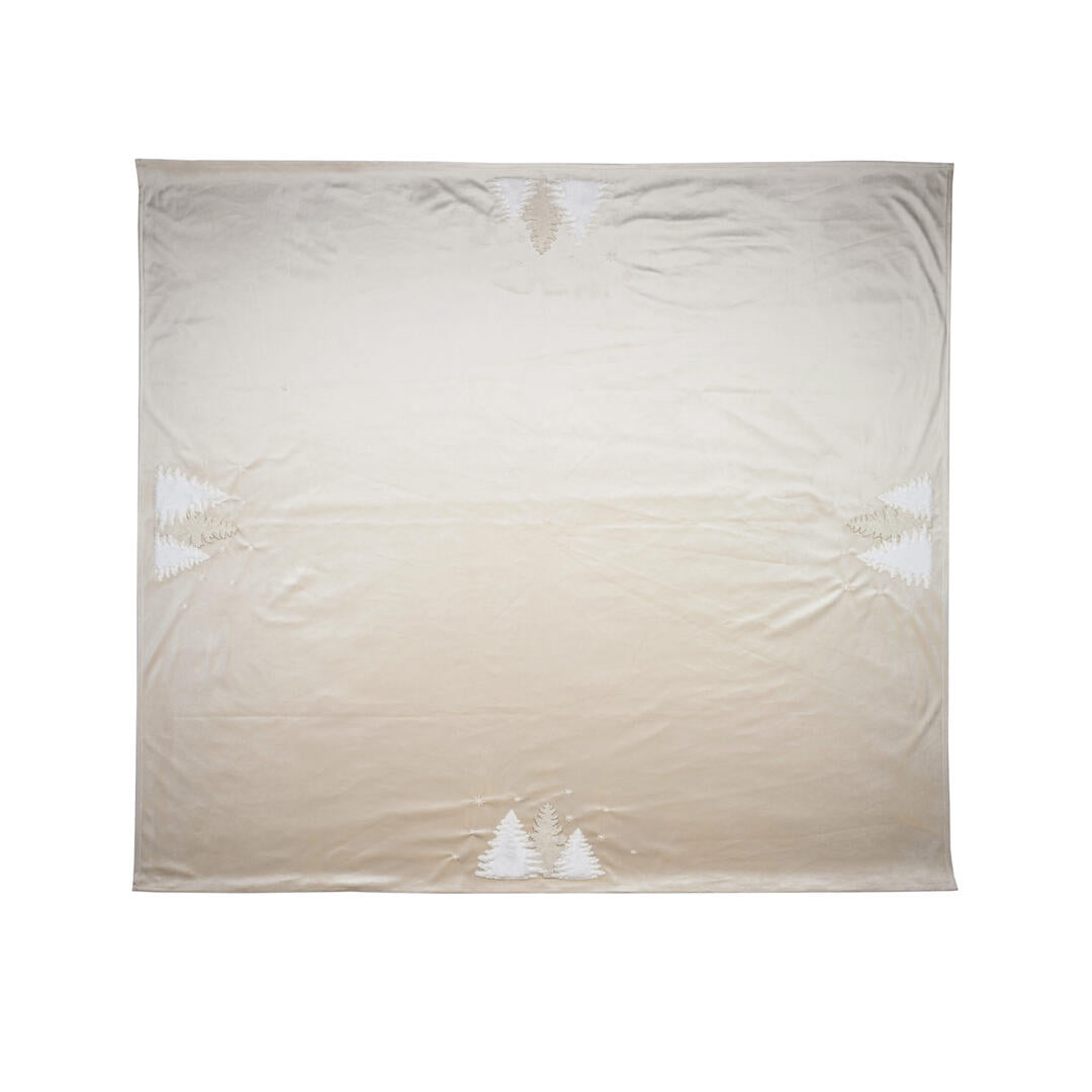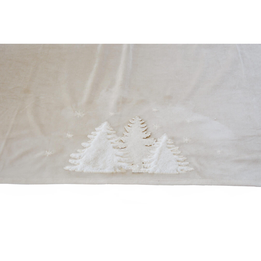 Tovaglia Elle Gift quadrata in vellutino colore beige/panna con decoro in rilievo ai quattro lati abeti e fiocchi di neve