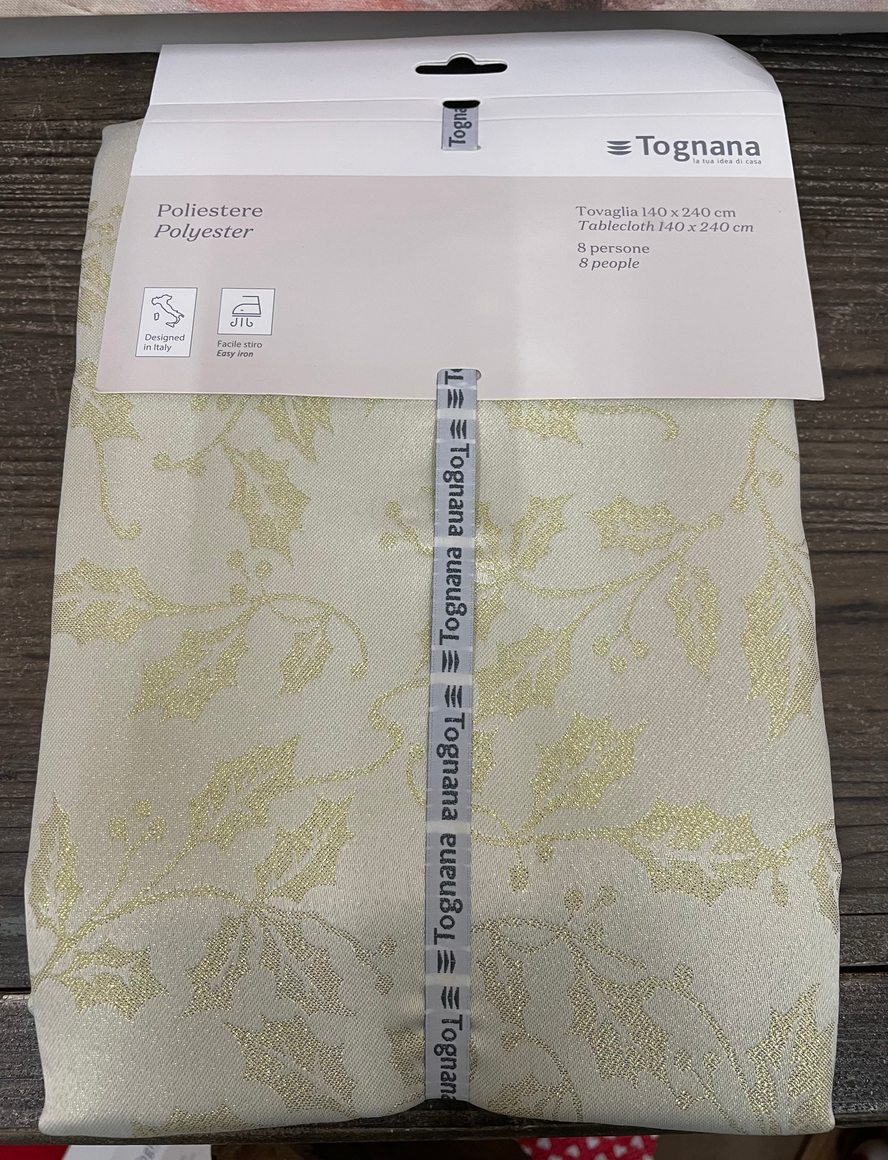 Tovaglia Tognana Holly Gold in poliestere decoro agrifoglio finitura dorata