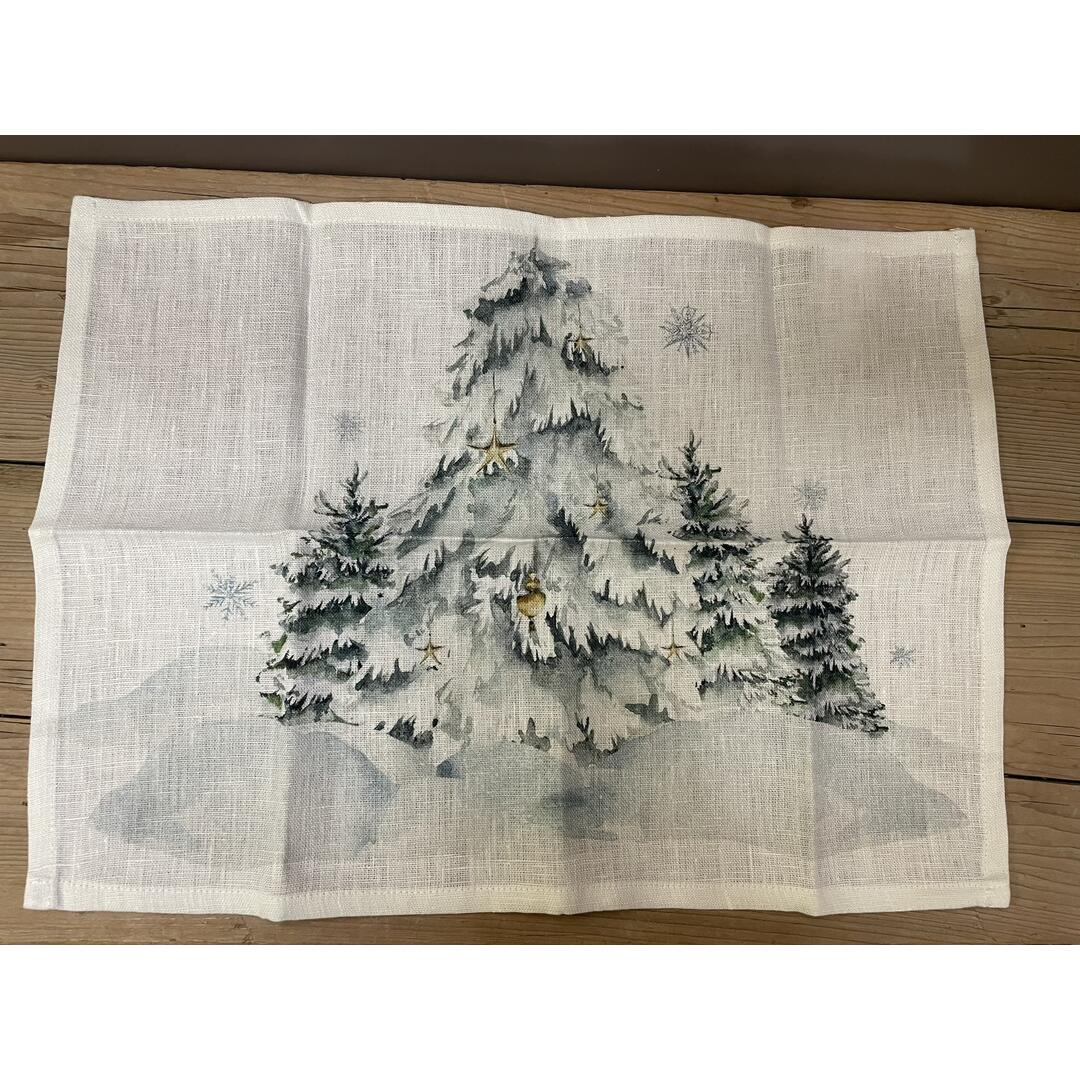 Tovaglietta New Diffusion decoro alberi innevati in 100% puro lino.