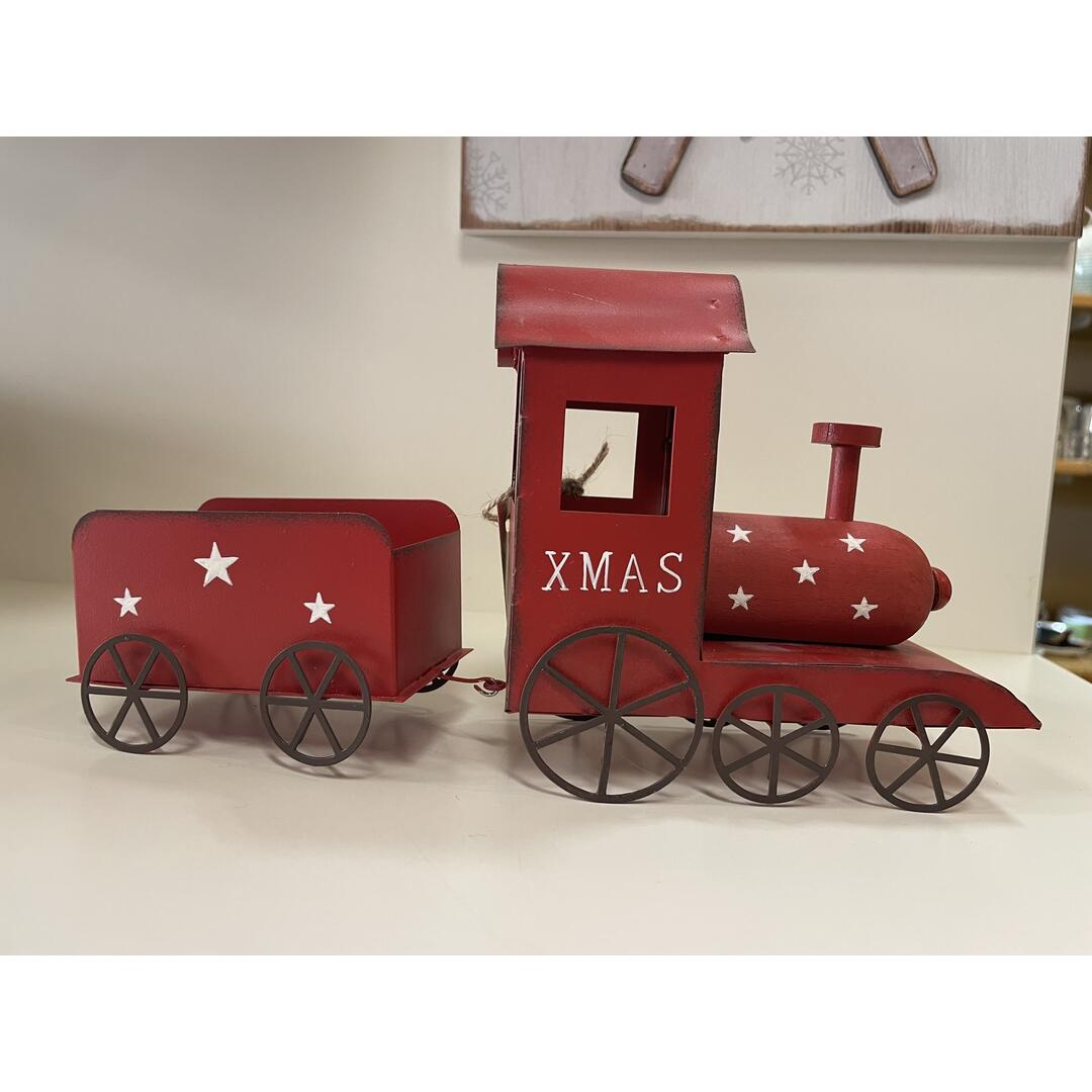 Trenino Elle Gift in latta colore rosso/bianco con scritta e decoro stelle.